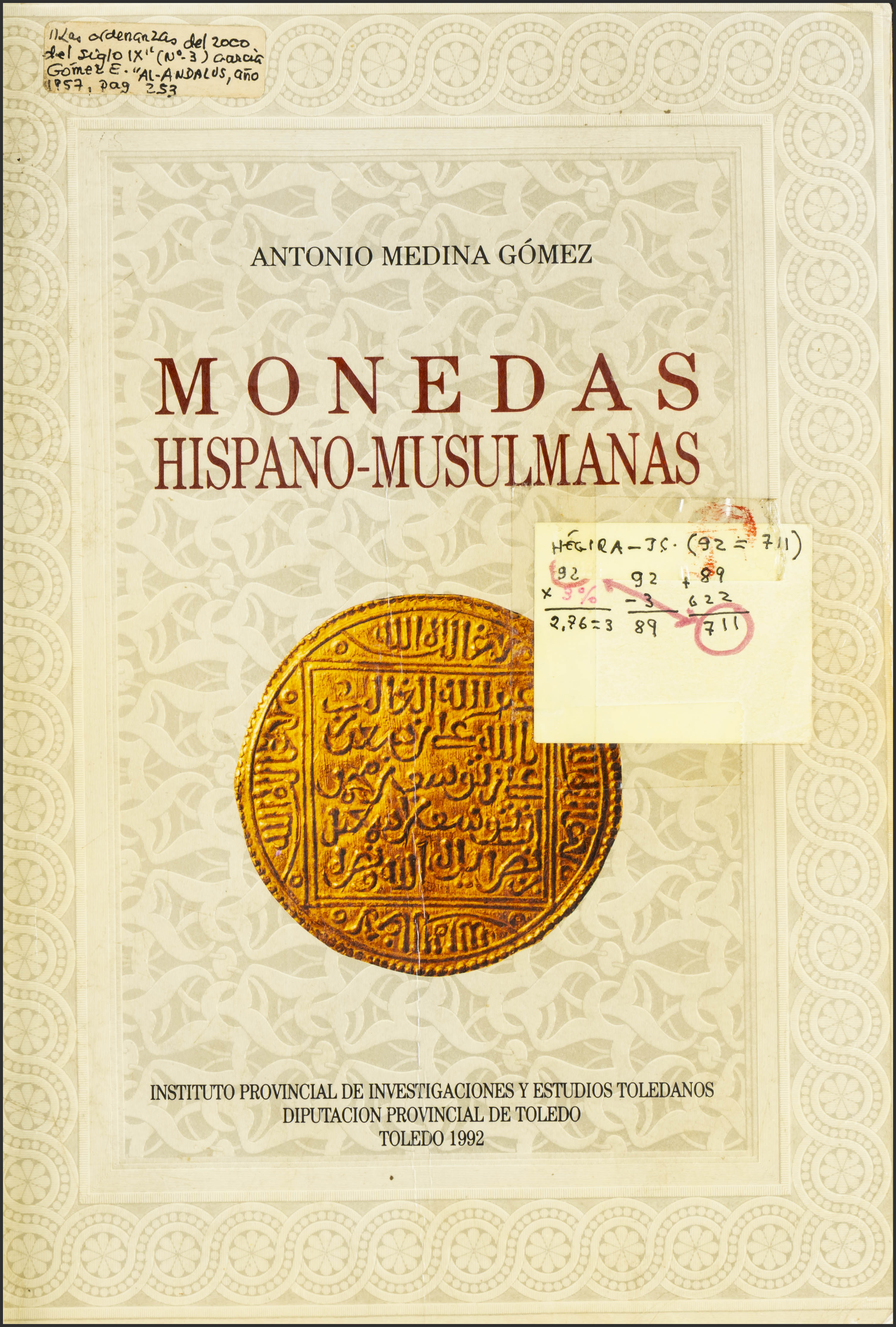 Monedas Hispano-Musulmanas. Antonio Medina Gómez. Toledo. 1992.