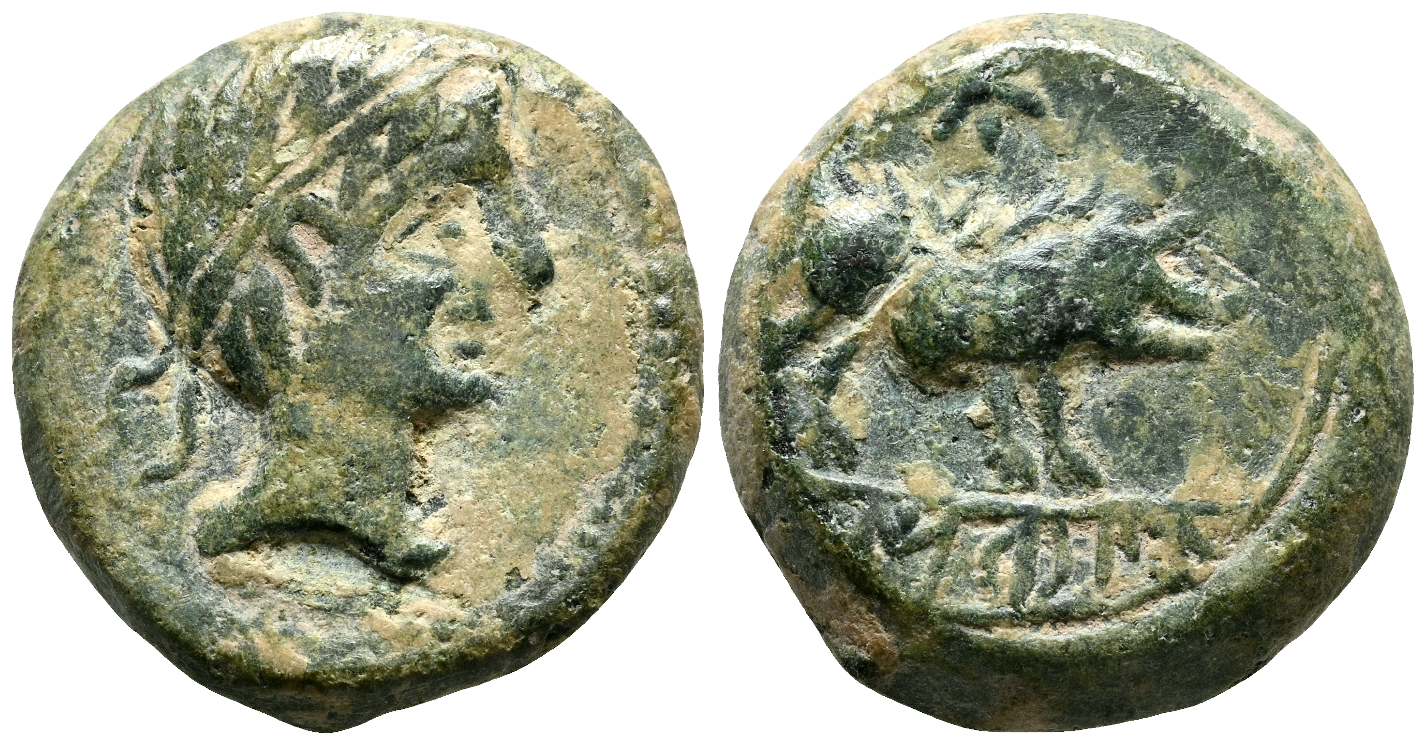 CASTULO (Cazlona, Jaén). Cuadrante. (Ae. 3,40g/15mm). 180 a.C. (FAB-739). Anv: Cabeza masculina diademada a derecha, delante letra ibérica To. Rev: Jabalí a derecha, encima letra ibérica U, debajo de línea leyenda ibérica: CaSTeLE. MBC.