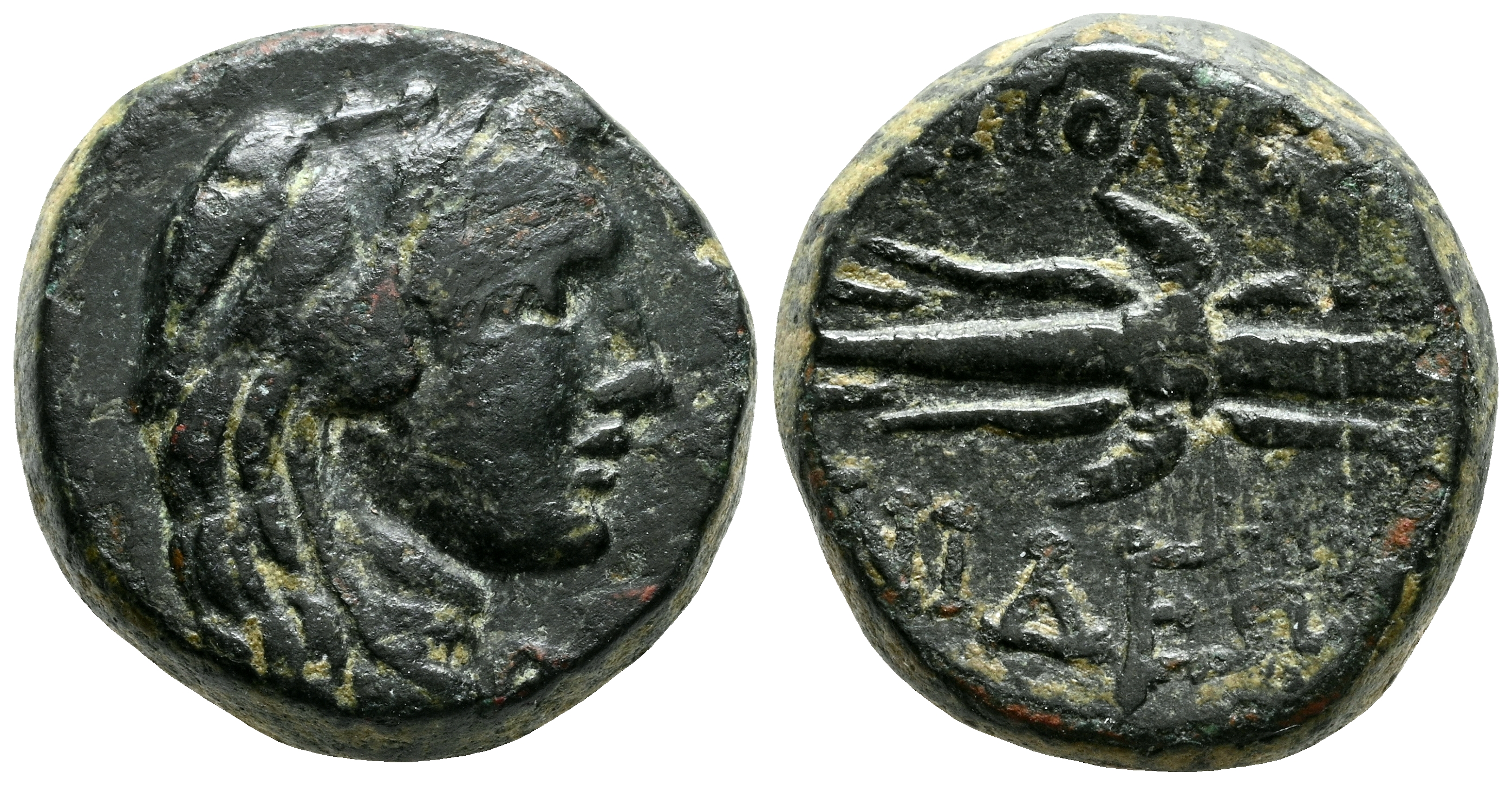LYDIA, Apollonis. Ae14. (Ae. 4,93g/17mm). Siglo II-I a.C. (BMC 4; SNG Munich 33). Anv: Cabeza de Heracles de joven con pien de león a derecha. Rev: Fúlmen, alrededor leyenda: AΠOΛΛΩNIΔEΩN. MBC-. Ex Nomos, Web Auction 40 (14/12/2025), Nº Lote 509.