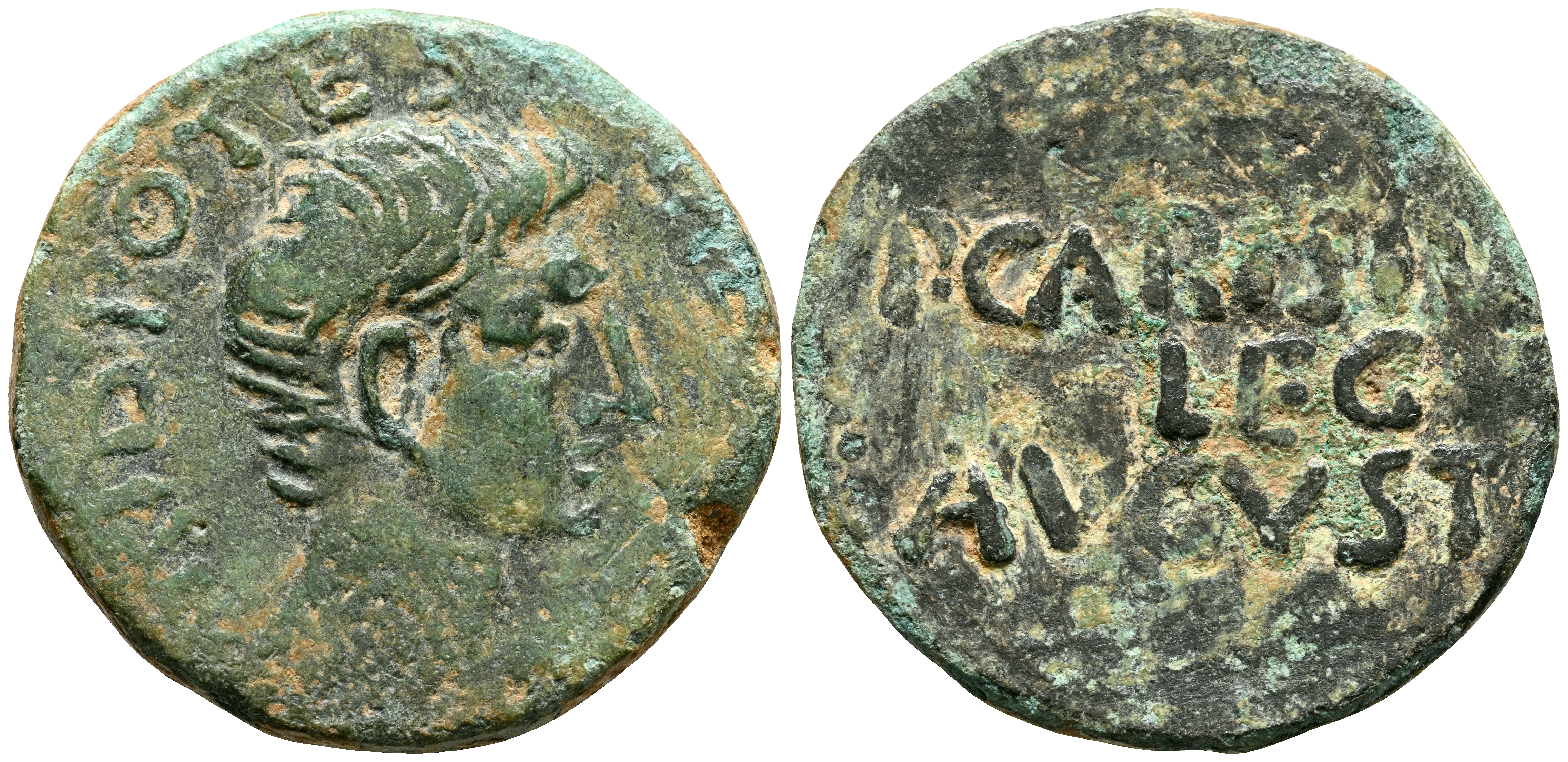EMERITA AUGUSTA (Mérida, Badajoz). As. (Ae. 5,87g/24mm). 27 a.C. (FAB-986). Anv: Cabeza de Augusto a derecha, alrededor leyenda: CAESAR AVGVS TRIBVN POTEST. Rev: Leyenda: P CARISIVS LEG AVGVSTI. MBC-.