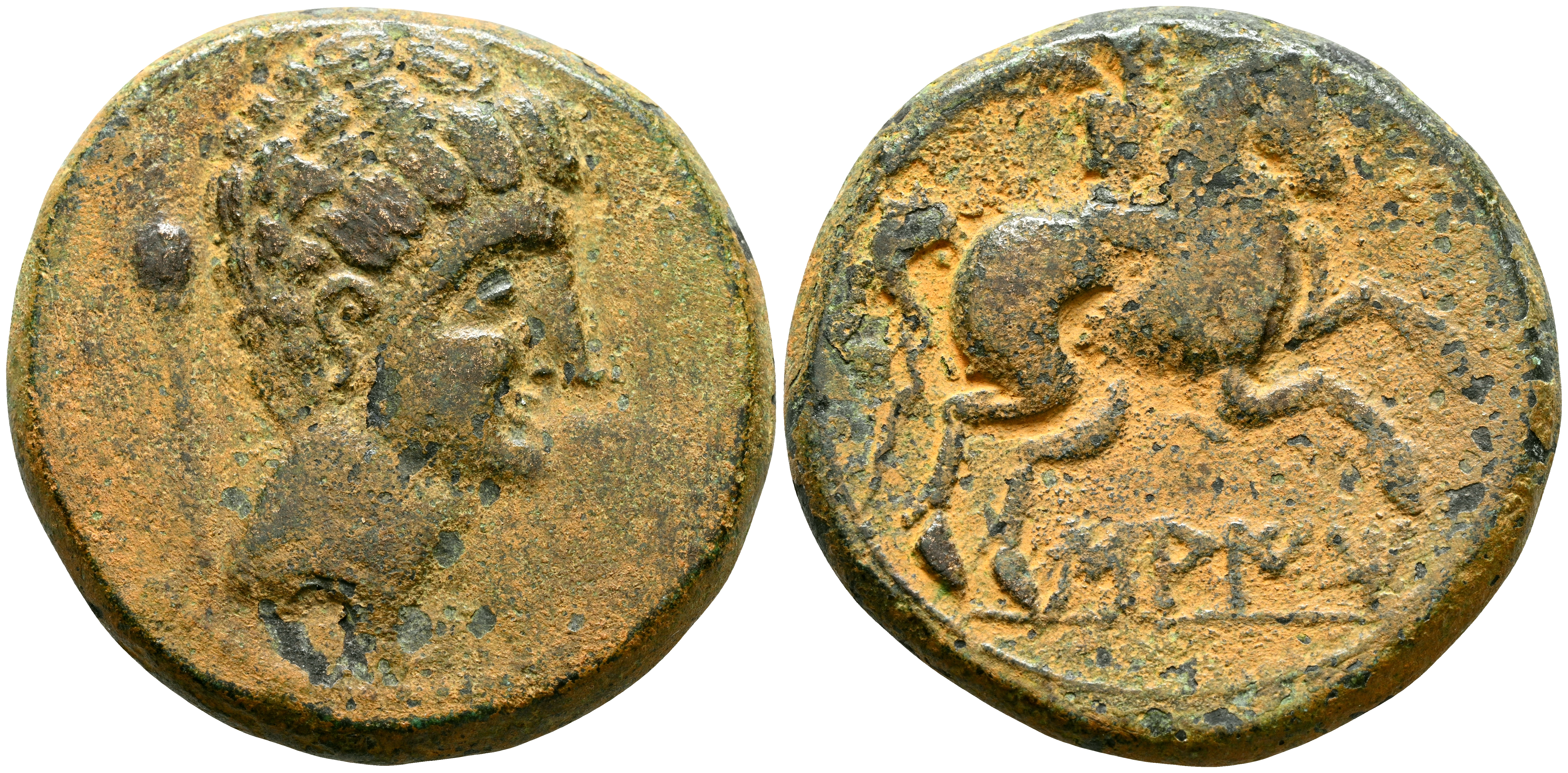 SAITI (Xátiva, Valencia). As. (Ae. 23,26g/33mm). 120-20 a.C. (FAB-2097). Anv: Cabeza masculina a derecha, detrás cetro. Rev: Jinete con palma a derecha, debajo leyenda ibérica sobre línea: SAITi. MBC.