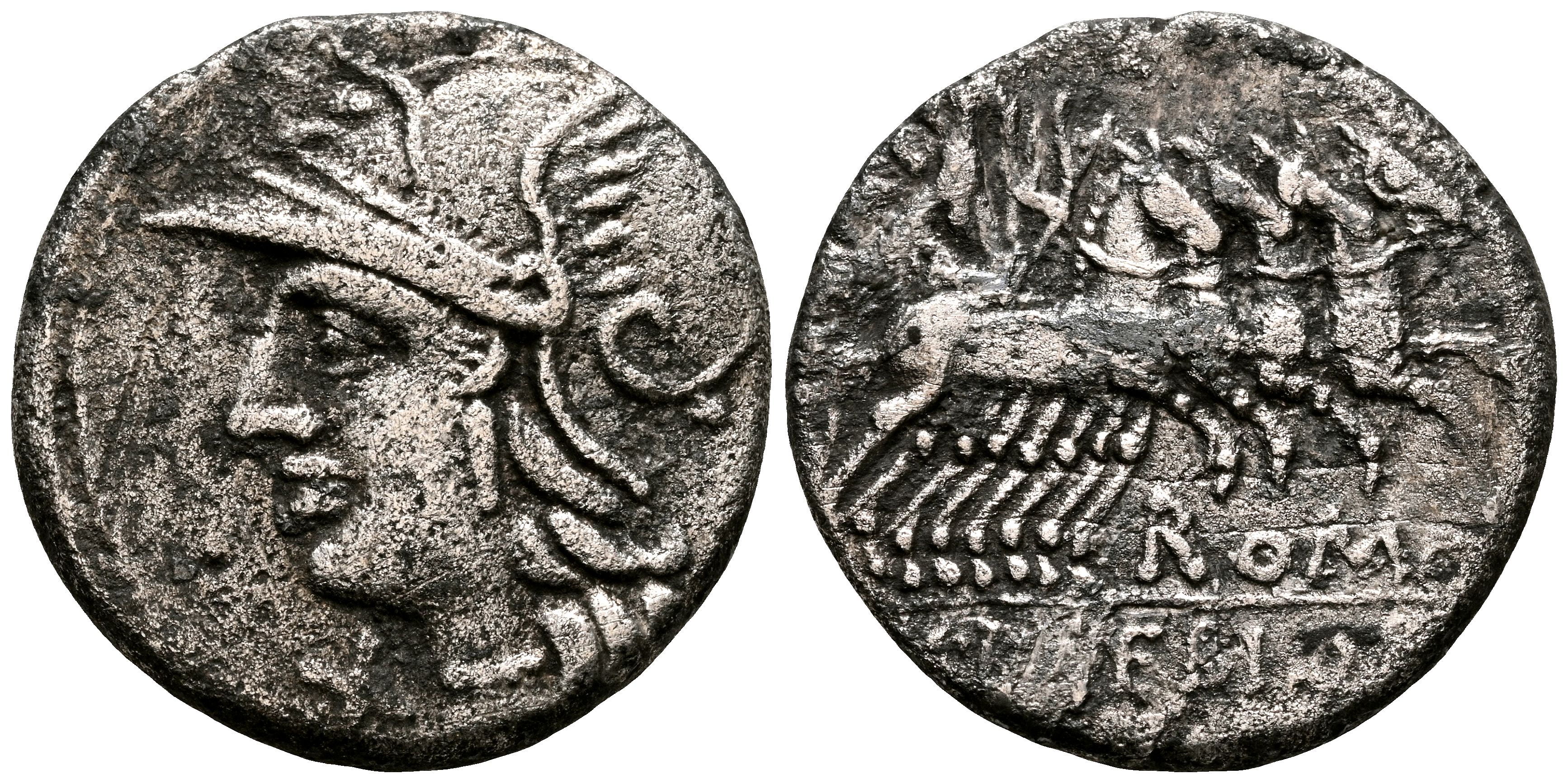 GENS BAEBIA. Denario. (Ar. 3,52g /17mm). 137 a.C. Roma. (FFC 200; Crawford 236/1e). Anv: Cabeza de Roma a la izquierda, delante de la X, detrás de la leyenda: TAMPI. Rev: Apollo conduciendo cuádriga a derecha con palma, arco y flechas, debajo: ROMA, en exergo: M BAEBI QF. MBC-. Porosidad.