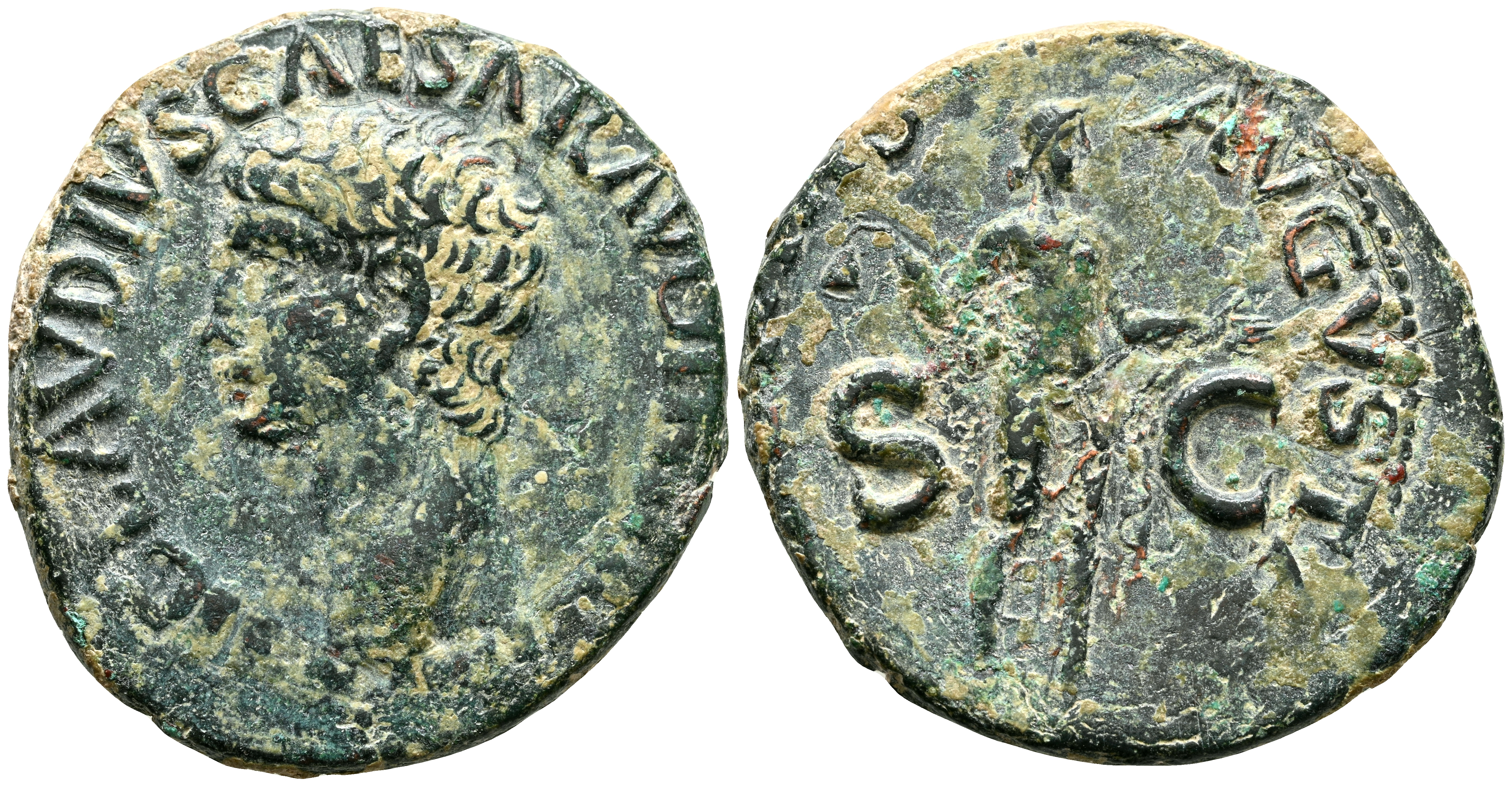 CLAUDIO I. As. (Ae. 9,05g/27mm). 50-54 d.C. Roma. (RIC 113). Anv: Cabeza de Claudio I a izquierda, alrededor leyenda: TI CLAVDIVS CAESAR AVG P M TR P IMP. Rev: Libertas estante a derecha portando píleo y extendiendo mano izquierda, entre S-C, alrededor leyenda: LIBERTAS AVGVSTA. MBC.