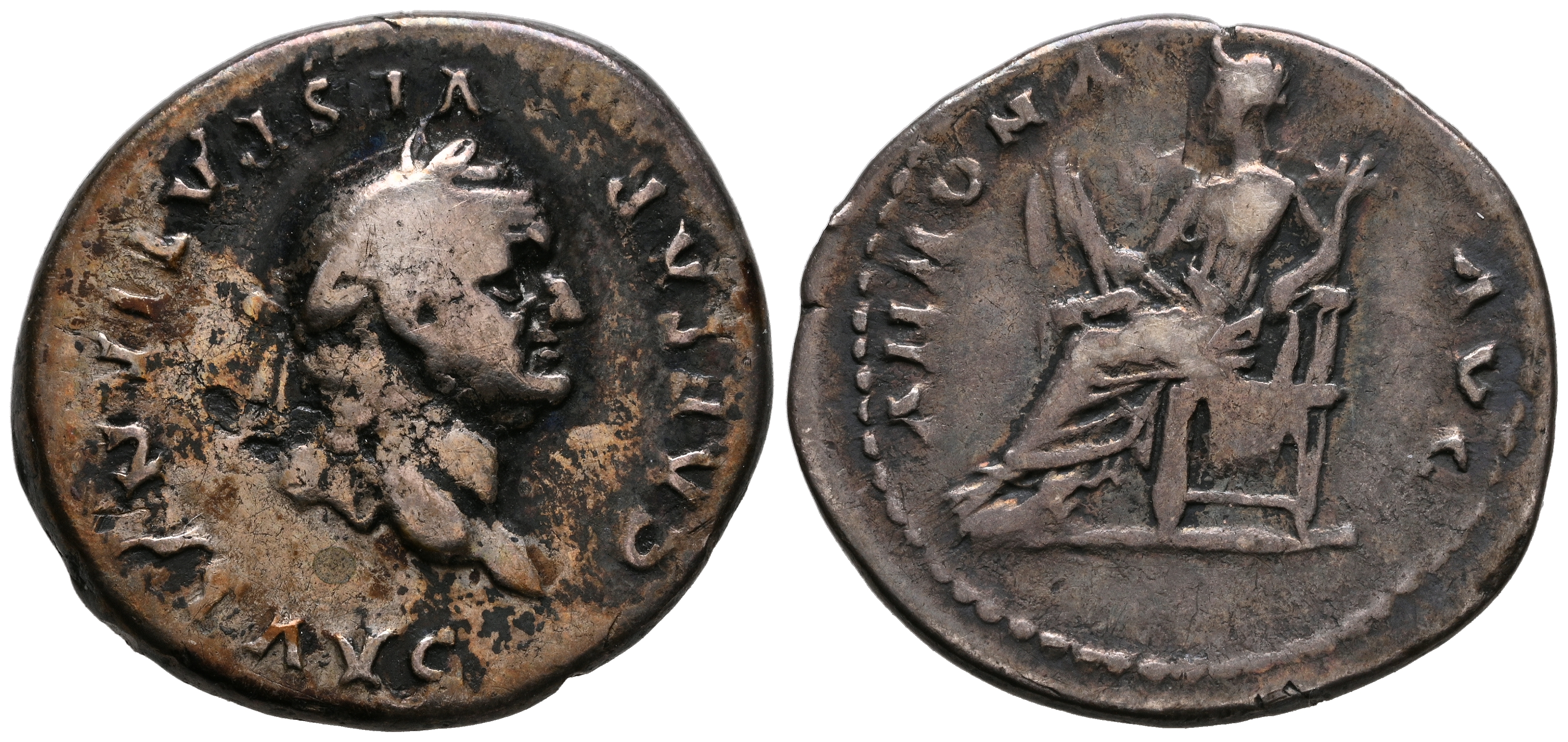 VESPASIANO. Denario. (Ar. 3,14g/19mm). 77-78 d.C. Roma. (RIC 964). Anv: Cabeza laureada de Vespasiano a derecha, alrededor leyenda: CAESAR VESPASIANVS AVG. Rev: Annona sentada a izquierda, alrededor leyenda: ANNONA AVG. MBC.