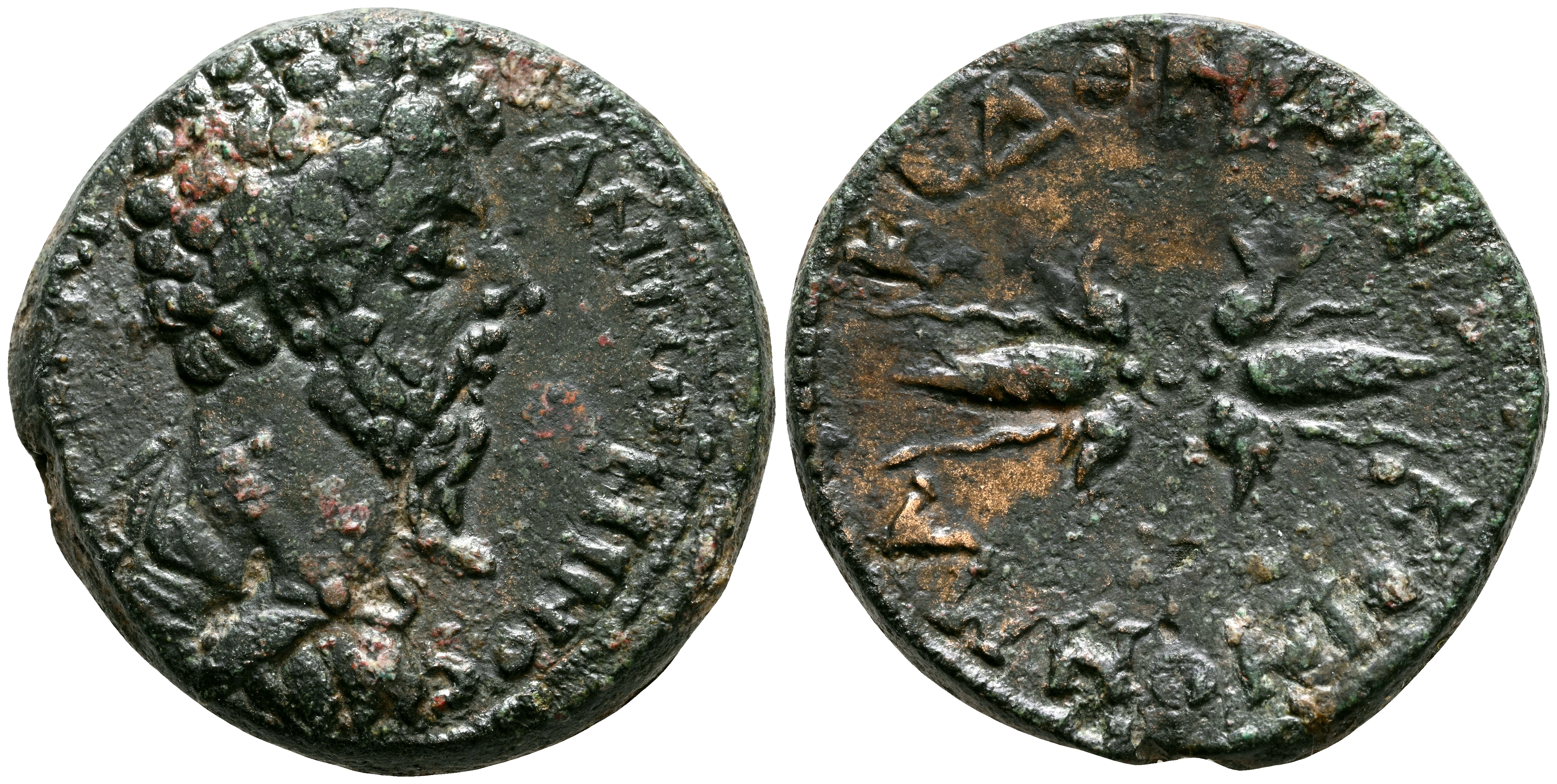 ANTONINO PIO. Ae25. (Ae. 15,25g/25mm). 138-161 d.C. Emisión del Koinon de los macedonios. (RPC 4264; AMNG 261). Anv: Busto laureado y drapeado de Antonino Pío a derecha, alrededor leyenda griega: KAICAP ANTΩNЄINOC. Rev: Fúlmen alado, alrededor leyend a griega: KOINON MAKЄΔONΩN. MBC-.