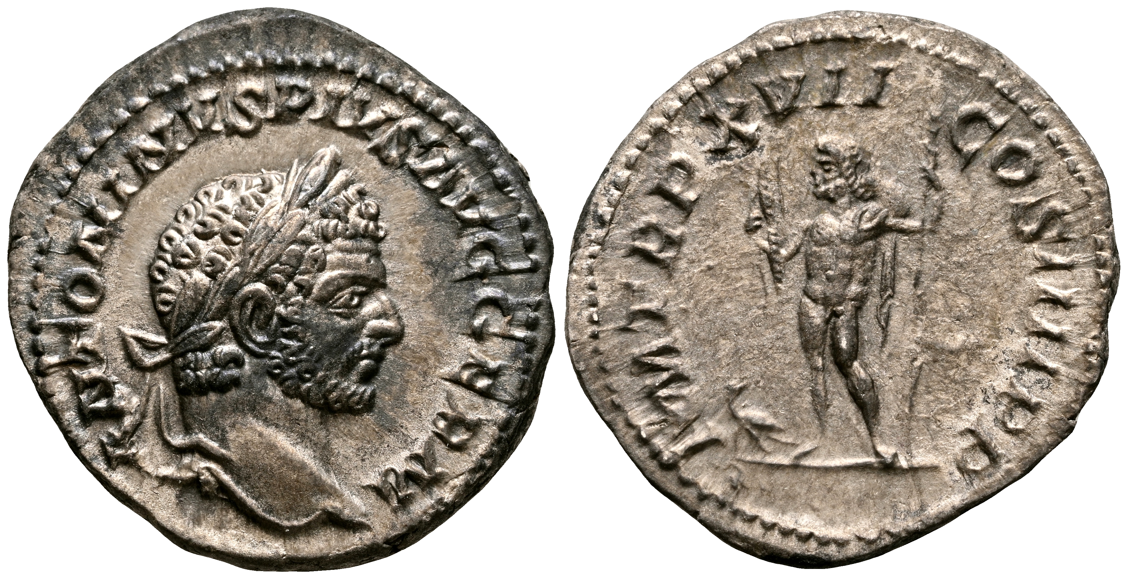 CARACALLA. Denario. (Ar. 3,22g/19mm). 214 d.C. Roma. (RIC 240). Anv: Cabeza laureada de Caracalla a derecha, alrededor leyenda: ANTONIVS PIVS AVG GERM. Rev: Júpiter estante a izquierda portando cetro y rayo, a sus pies águila, alrededor leyenda: P M TR P XVII COS IIII P P. MBC+.