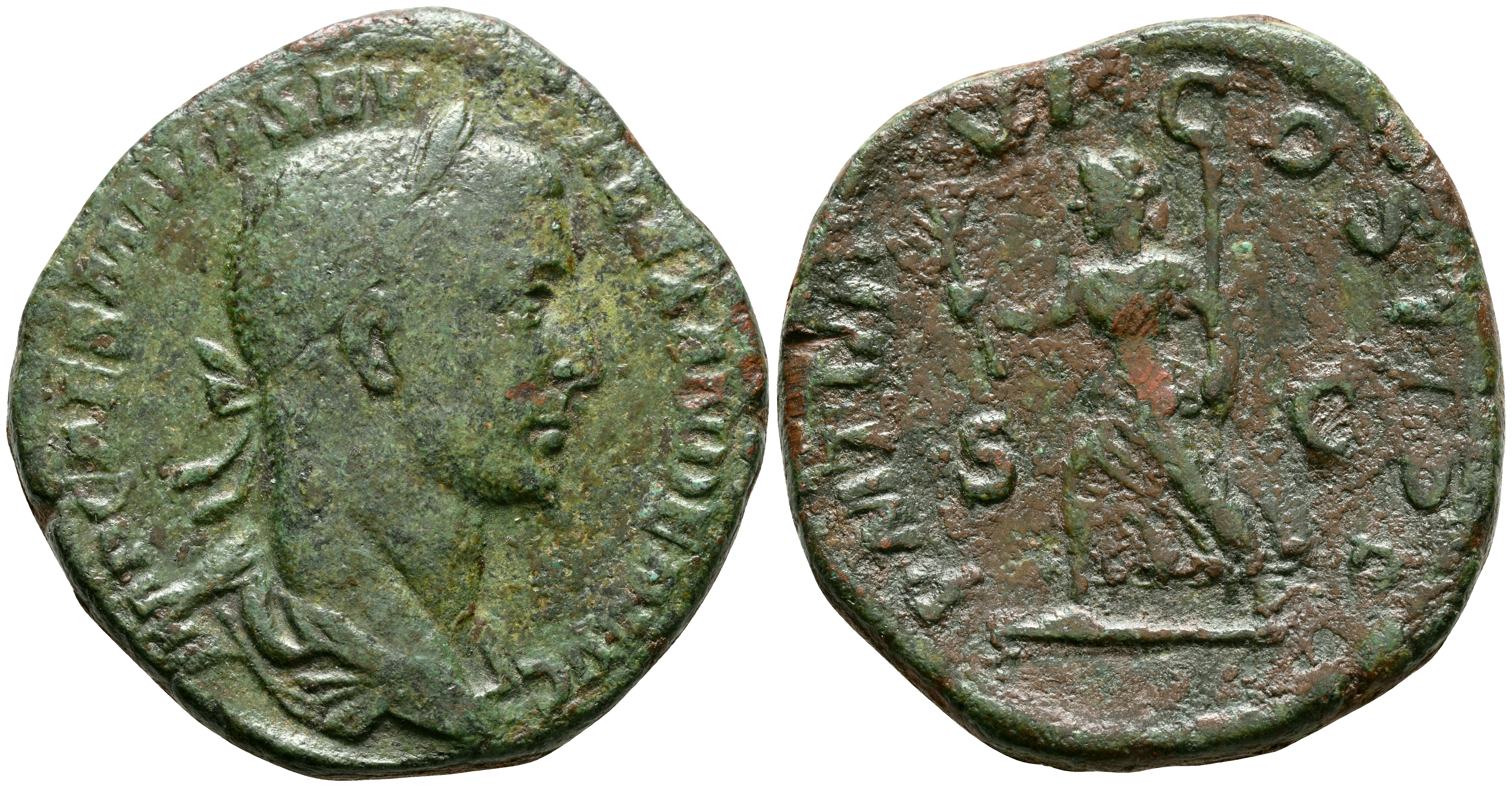 ALEJANDRO SEVERO. Sestericio. (Ae. 16,88g/30mm). 222-235 D.C. Roma. (RIC 479). Anv: Busto laureado y drapeado de Alejandro Severo a derecha, alrededor leyenda: IMP CAES M AVR SEV ALEXANDER AVG. Rev: Pax avanzando a izquierda portando rama y cetro, entre S-C, alrededor leyenda: P M TR P VI COS II P P. MBC-.