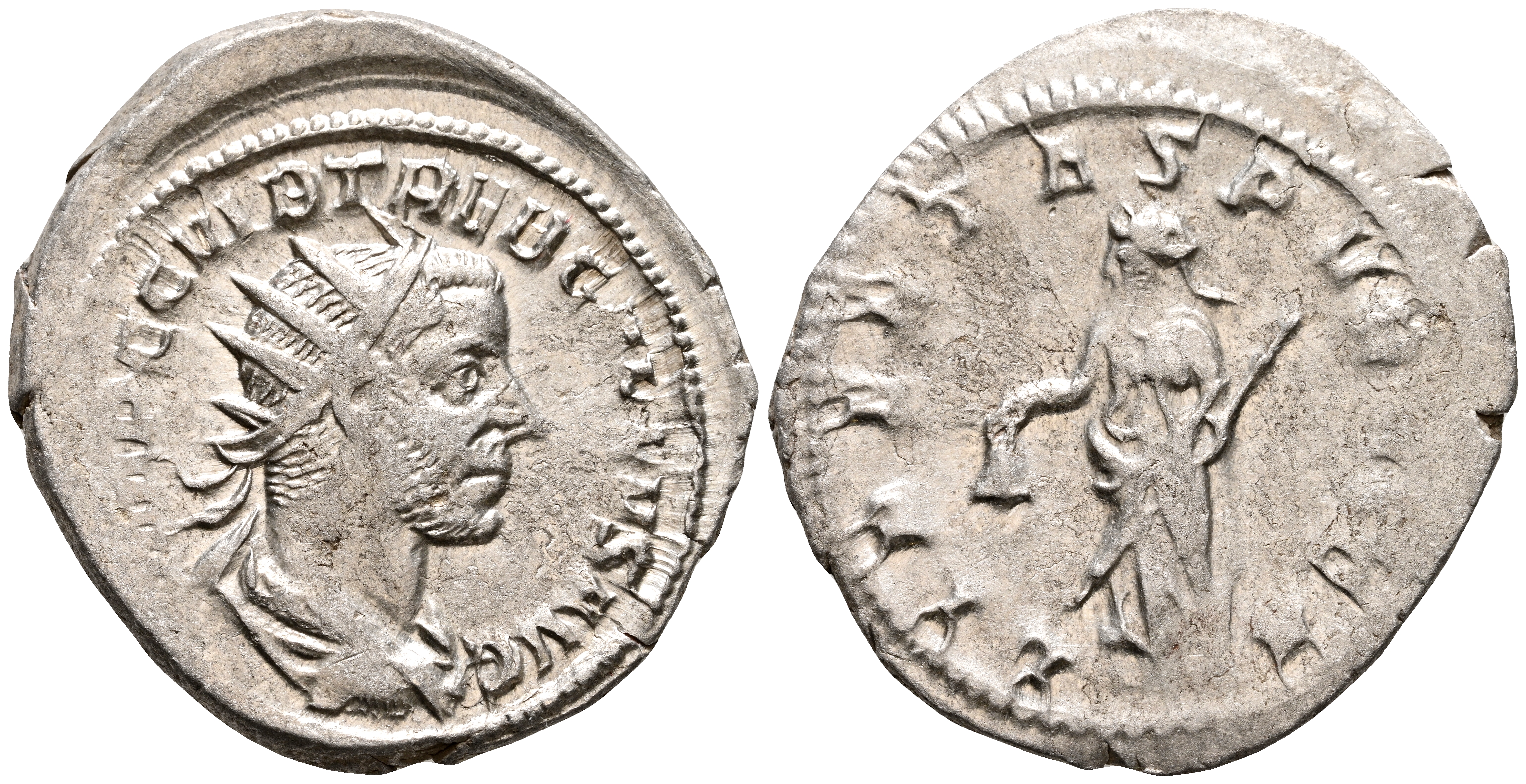 TREBONIANO GALO. Antoniniano. (Ar. 4,11g/24mm). 252-253 d.C. Roma. (RIC 70). Anv: Busto radiado y drapeado de Treboniano Galo a derecha, alrededor leyenda: IMP C C VIB TREB GALLVS AVG. Rev: Libertas estante a izquierda portando cetro y pileo, alrededor leyenda: LIBERTAS PVBLICA. MBC+. Ligeros restos de brillo original.