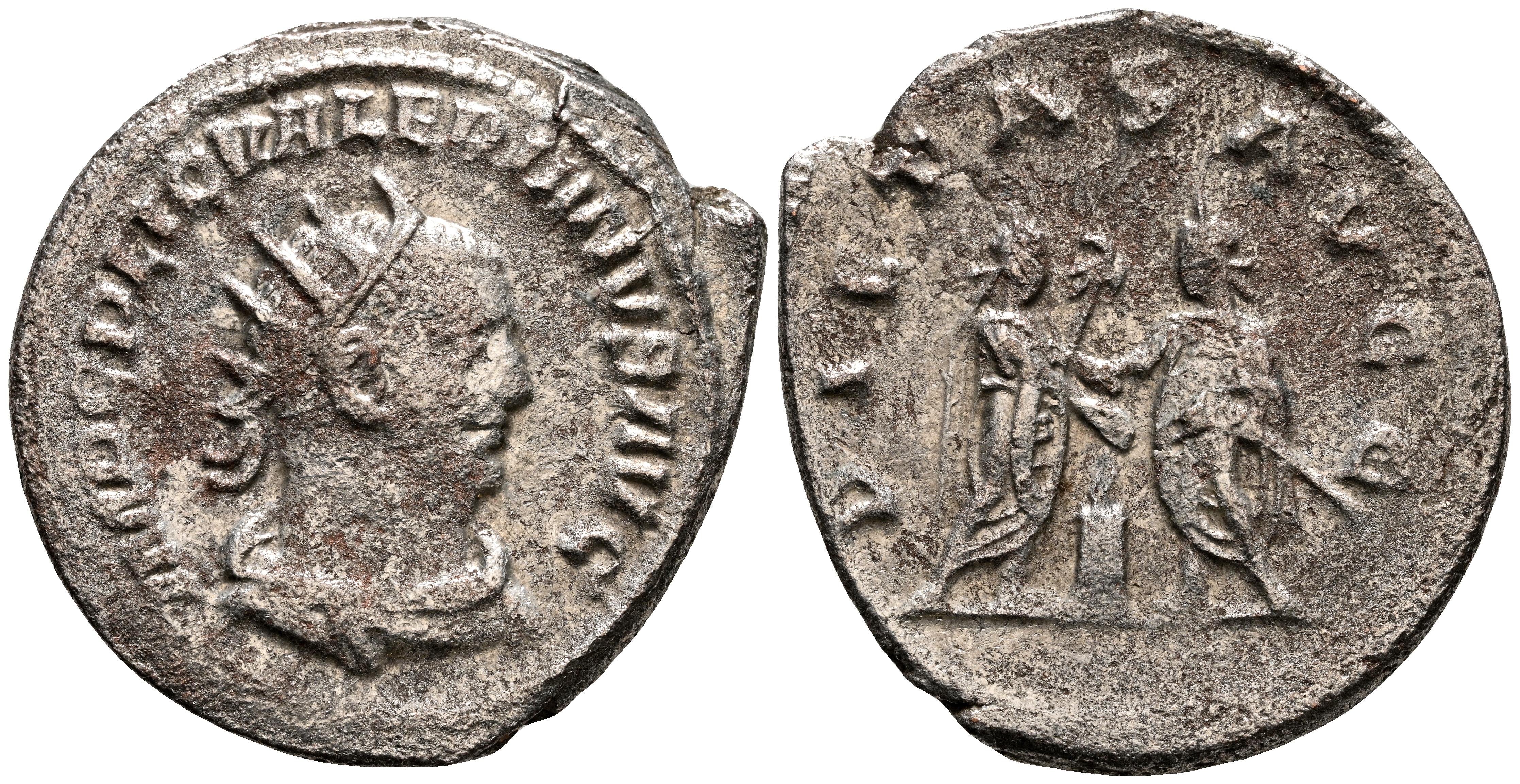 VALERIANO I. Antoniniano. (Ve. 4,19g/25mm). 256-260 d.C. Samosata. (RIC 285). Anv: Busto radiado y drapeado de Valeriano I a derecha, alrededor leyenda: IMP C P LIC VALERIANVS P F AVG. Rev: Valeriano I y Galieno enfrentados, entre ellos altar y ambos con cetros con águilas, alrededor leyenda: PIETAS AVGG. MBC-.