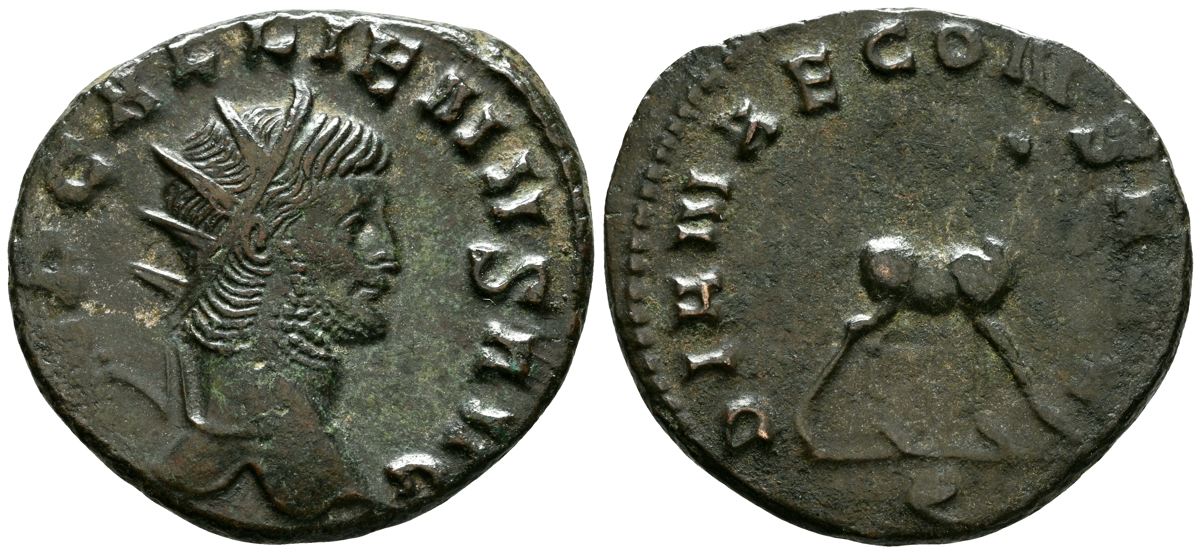 GALIENO. Antoniniano. (Ae. 3,01g/19mm). 267-269 d.C. Roma. (RIC 177). Anv: Cabeza radiada de Galieno a derecha, alrededor leyenda: GALLIENVS AVG. Rev: Gamo a derecha, debajo: Q, alrededor leyenda: DIANAE CONS ADG. EBC-.