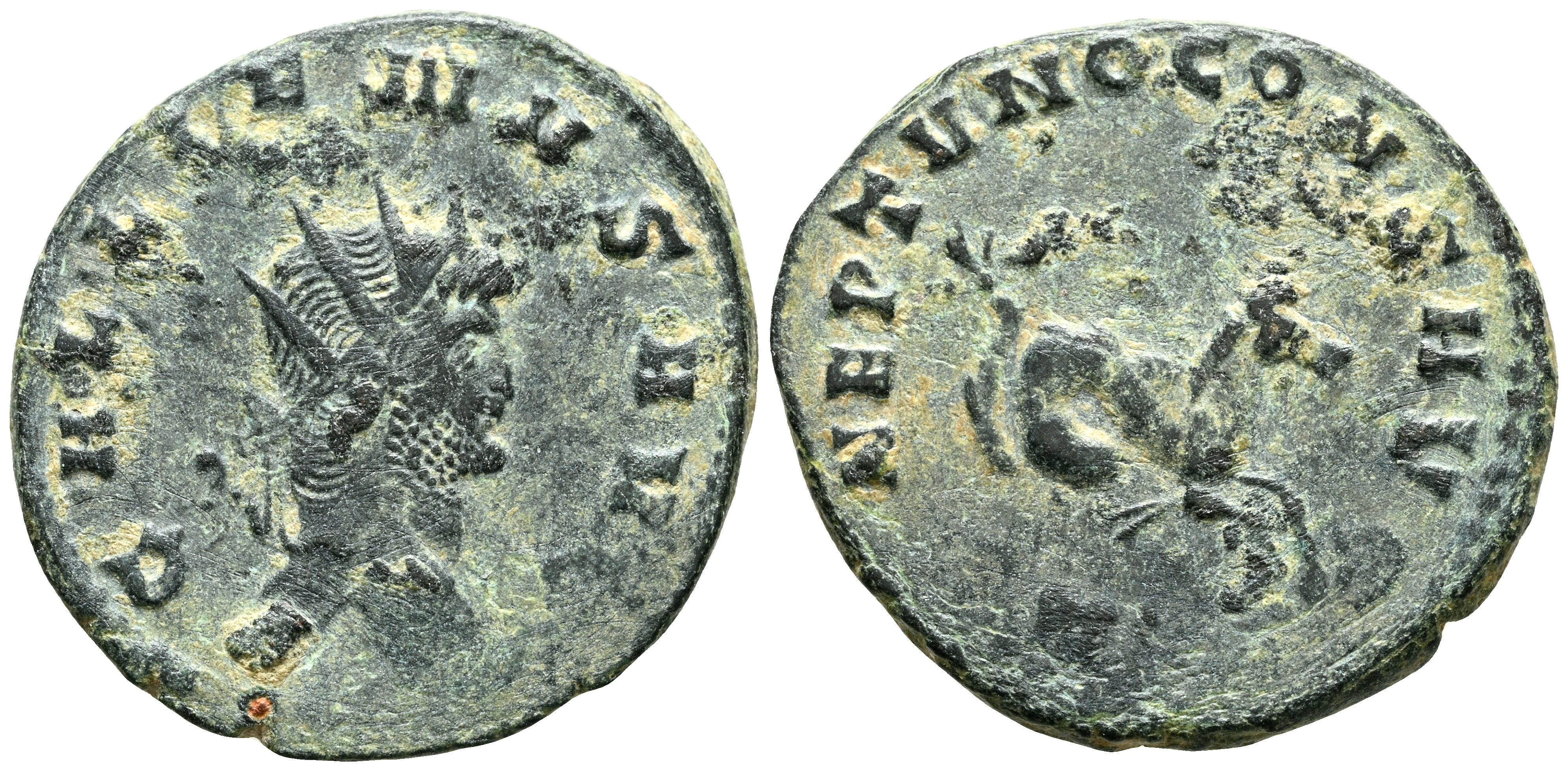 GALIENO. Antoniniano. (Ae. 3,26g/21mm). 267-268 d.C. Roma. (RIC 245). Anv: Busto radiado y acorazado de Galieno a derecha, alrededor leyenda: GALLIENVS AVG. Rev: Hipocampo a la derecha, debajo N, alrededor leyenda: NEPTVNO CONS AVG. MBC.
