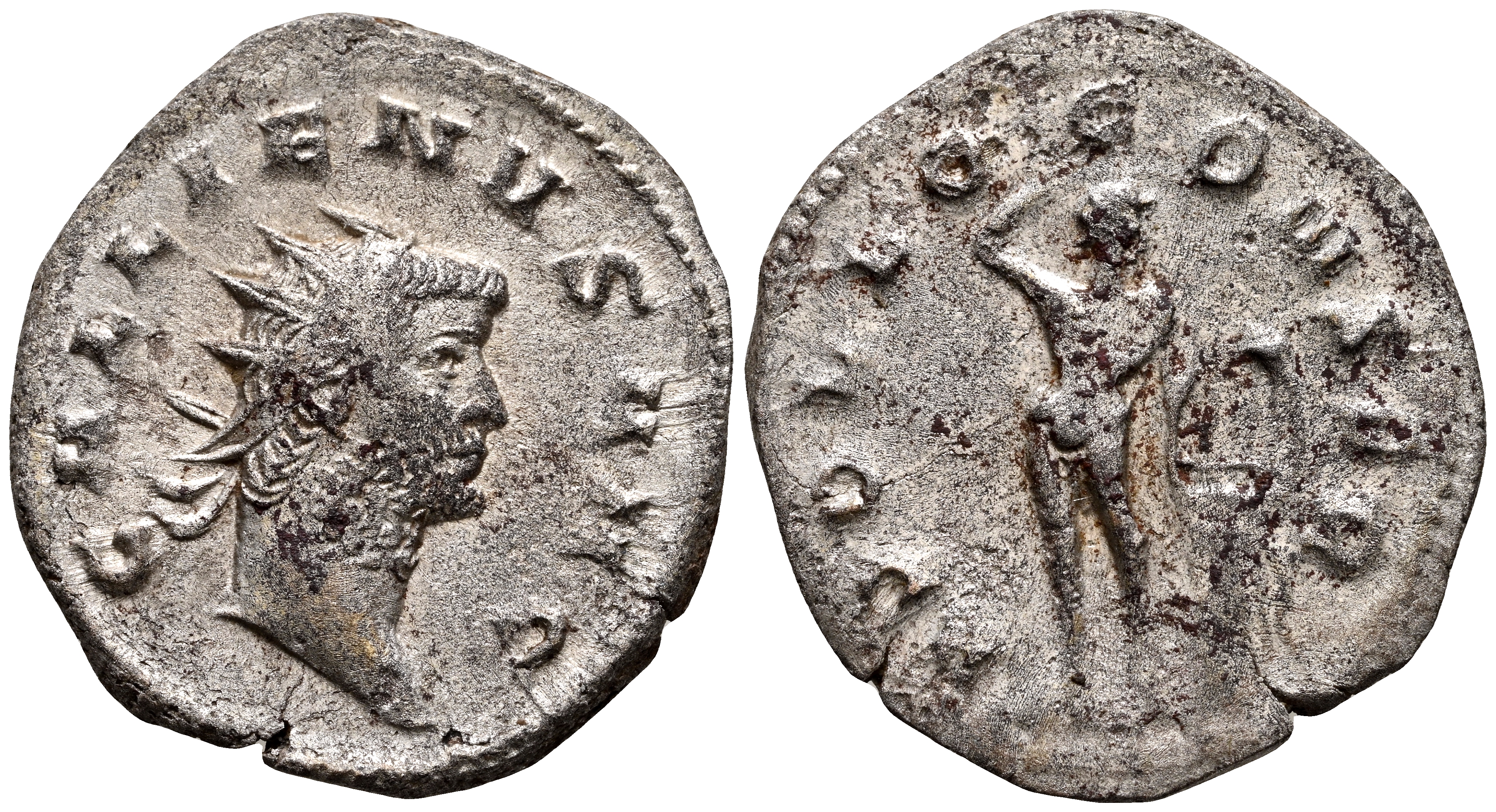 GALIENO. Antoniniano. (Ar. 2,59g/22mm). 253-268 d.C. Mediolanum. (RIC 467). Anv: Busto radiado y con coraza de Galieno a derecha, alrededor leyenda: GALLIENVS AVG. Rev: Apolo estante a derecha levantando un brazo derecho y sujetando arpa sobre columna, alrededor leyenda: APOLLO CONSERVA. MBC.