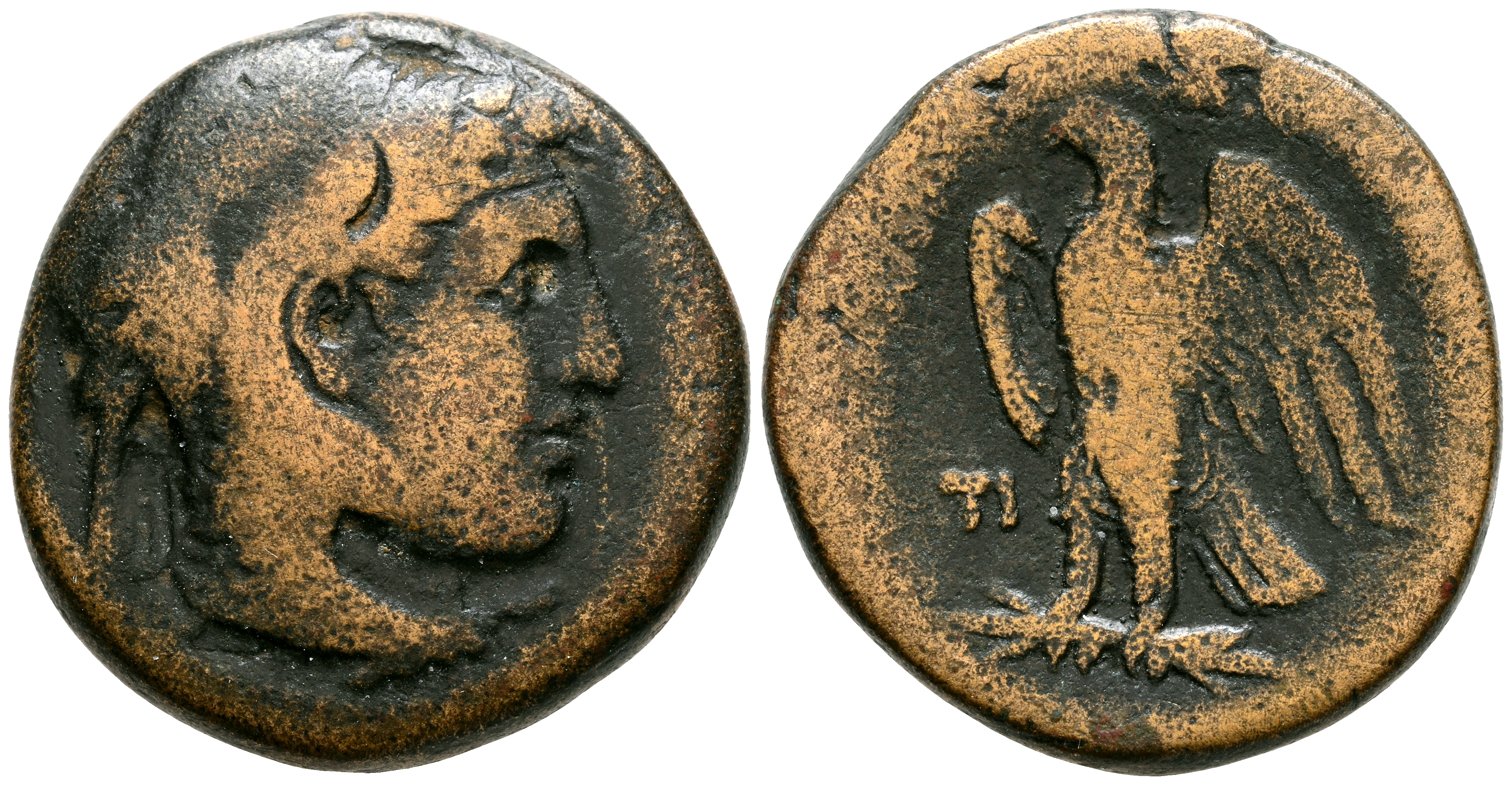 REINO PTOLEMAICO, Ptolomeo I Soter. Obolo. (Ae. 9,08g/22mm). 294-282 a.C. Alejandría. (Svonoros 226). Anv: Cabeza de Alejandro III con piel de elefante a derecha. Rev: Aguila estante sobre rayo, en campo: TI, alrededor leyenda: ΠΤΟΛΕΜΑΙΟΥ ΒΑΣΙΛΕΩΣ. M BC-.