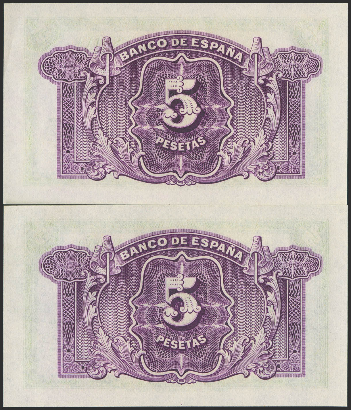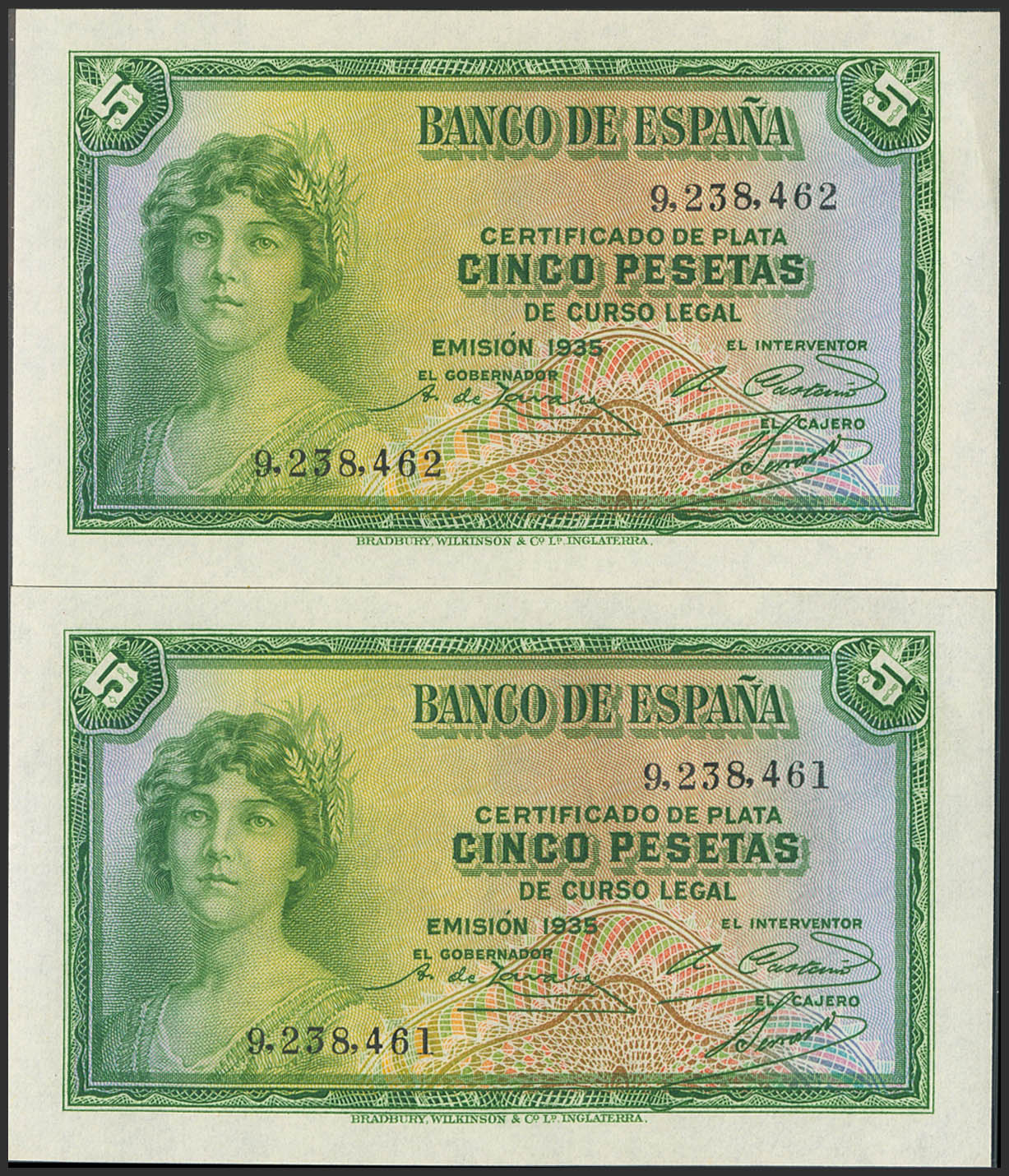 5 Pesetas. 1935. Certificado de Plata. Pareja correlativa. Sin serie. (Edifil 2023: 363). Apresto original. SC/SC-.