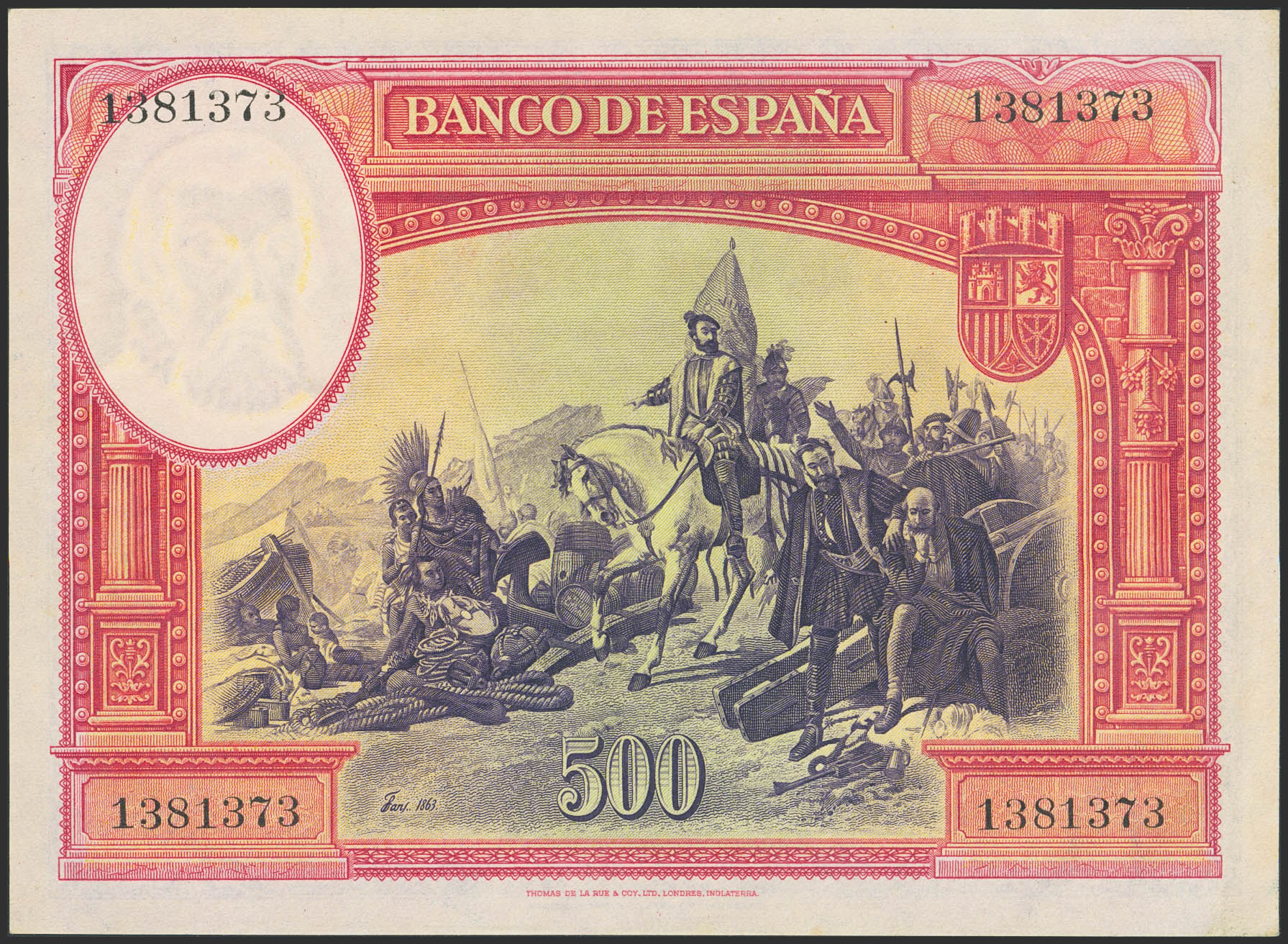500 Pesetas. 7 de Enero de 1935. Sin serie. (Edifil 2023: 365). Apresto original, manchas del tiempo. SC--.