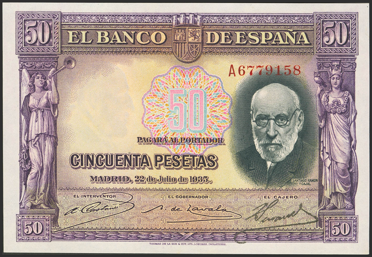 50 Pesetas. 22 de Julio de 1935. Serie A. (Edifil 2023: 366a). Apresto original. SC.