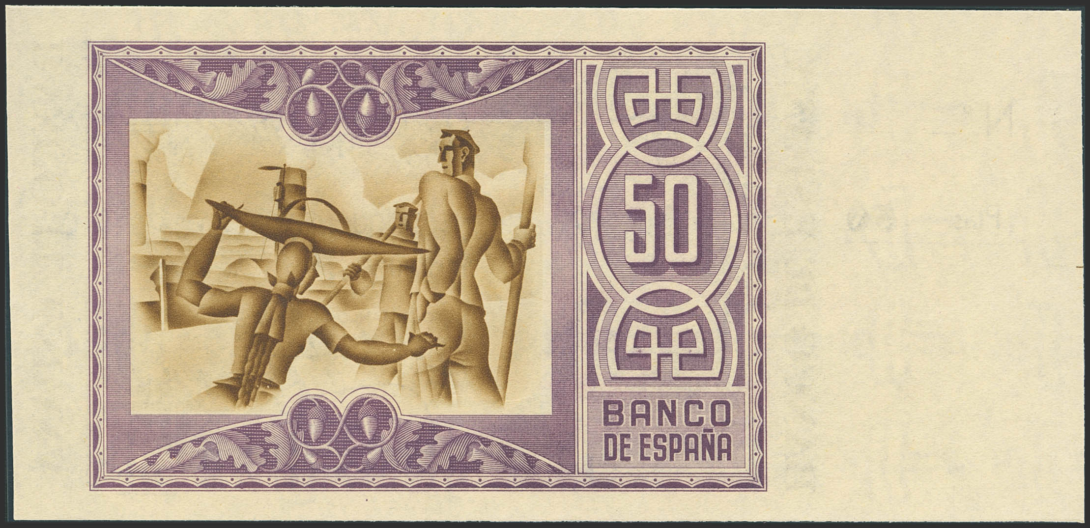 50 Pesetas. 1 de Enero de 1937. Sucursal de Bilbao, antefirma Banco de Bilbao. Sin serie y sin numeración, matriz a la izquierda. (Edifil 2023: 389a). Apresto original. SC.