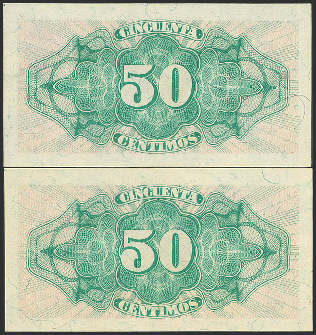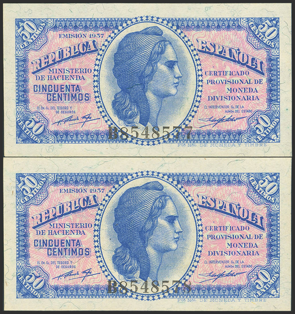 50 Céntimos. 1937. Pareja correlativa. Serie B. (Edifil 2023: 391). Apresto original. SC.