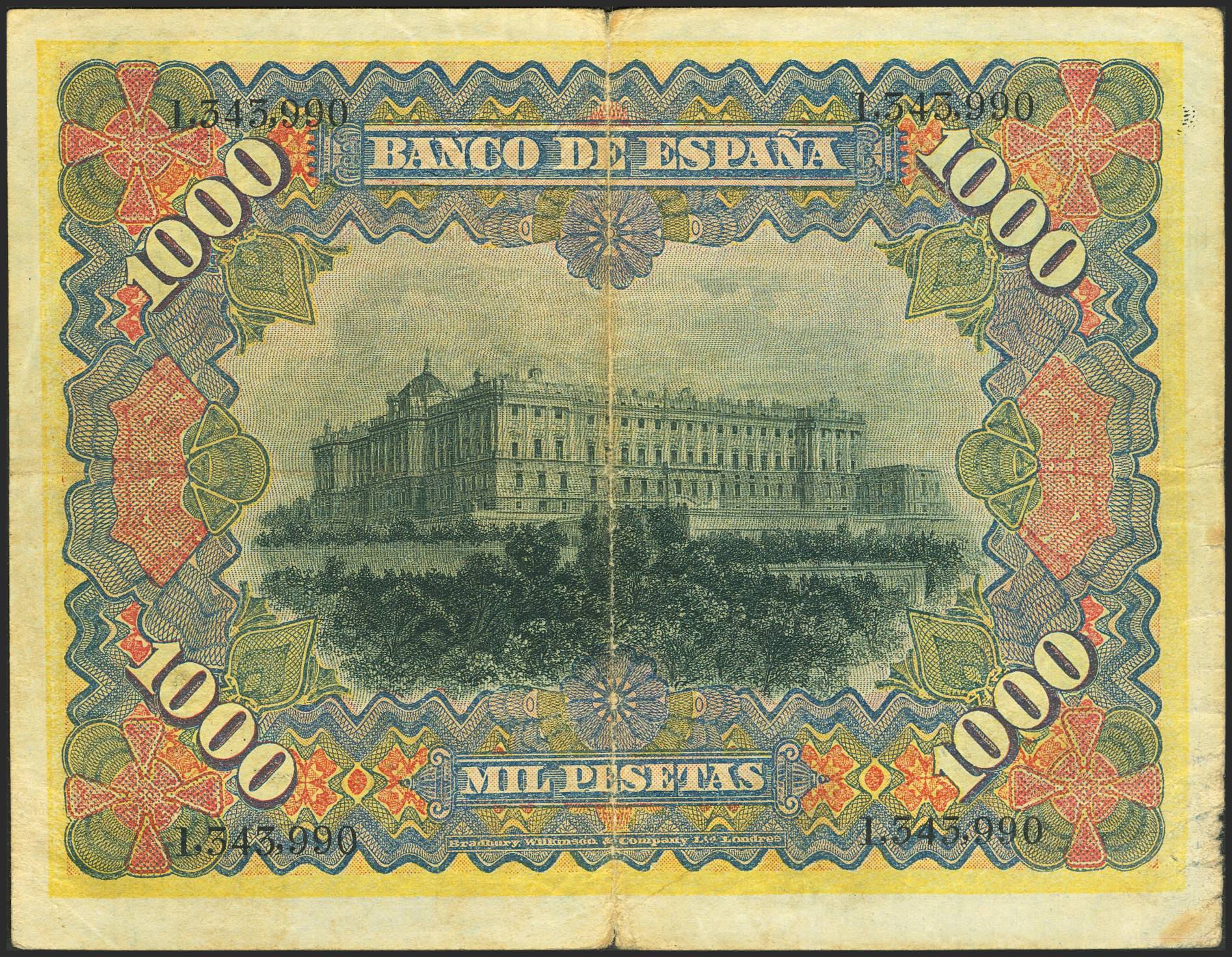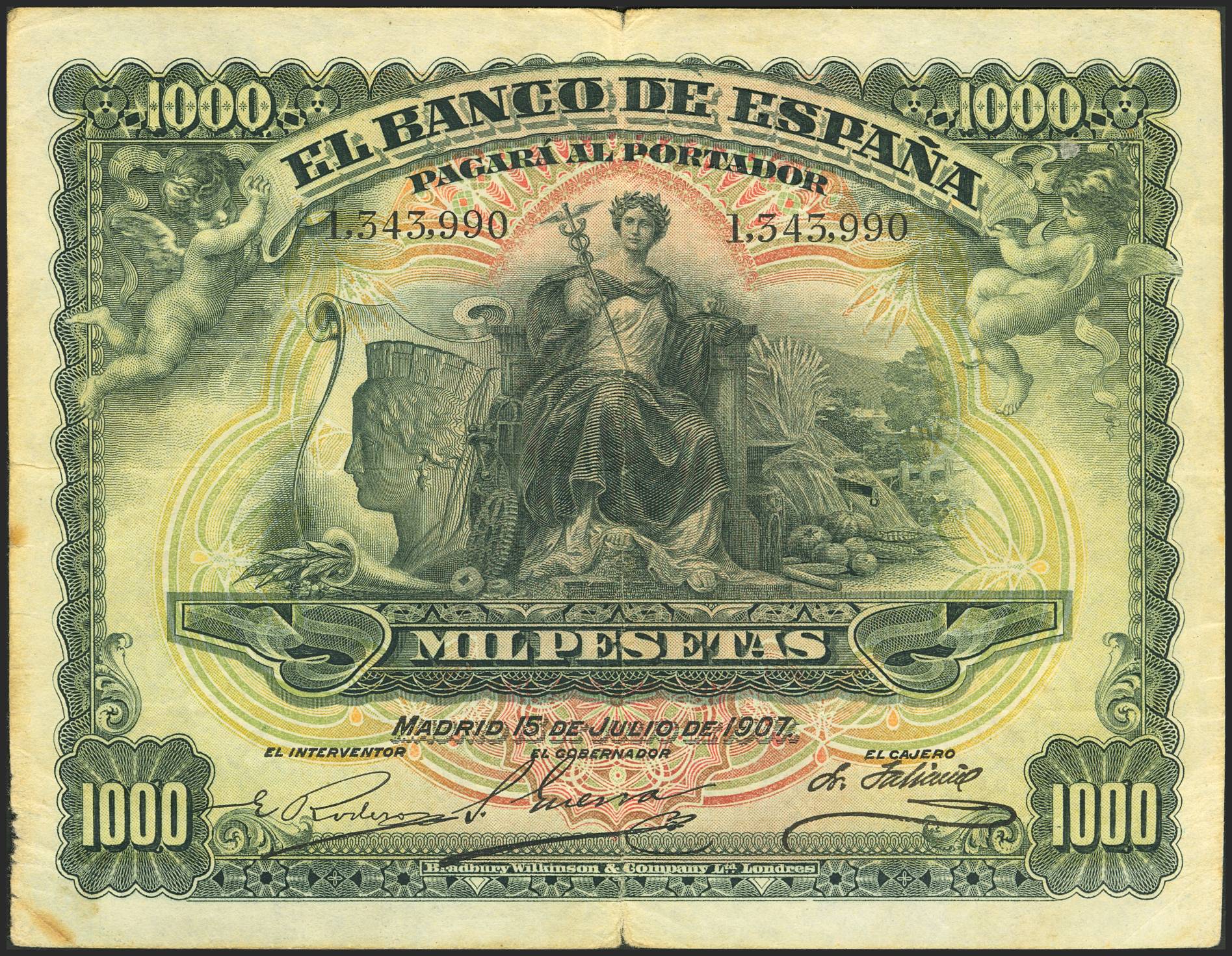 1000 Pesetas. 15 de Julio de 1907. Sin serie y sello en seco ESTADO ESPAÑOL / BURGOS. (Edifil 2023: 415). MBC-.