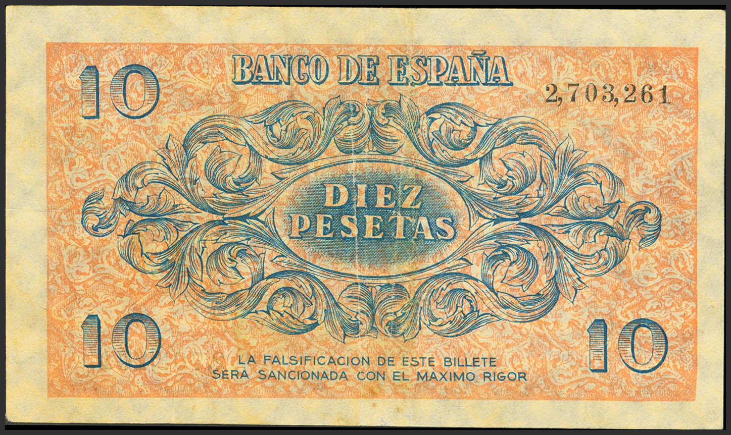10 Pesetas. 21 de Noviembre de 1936. Sin serie. (Edifil 2023: 418). MBC+.