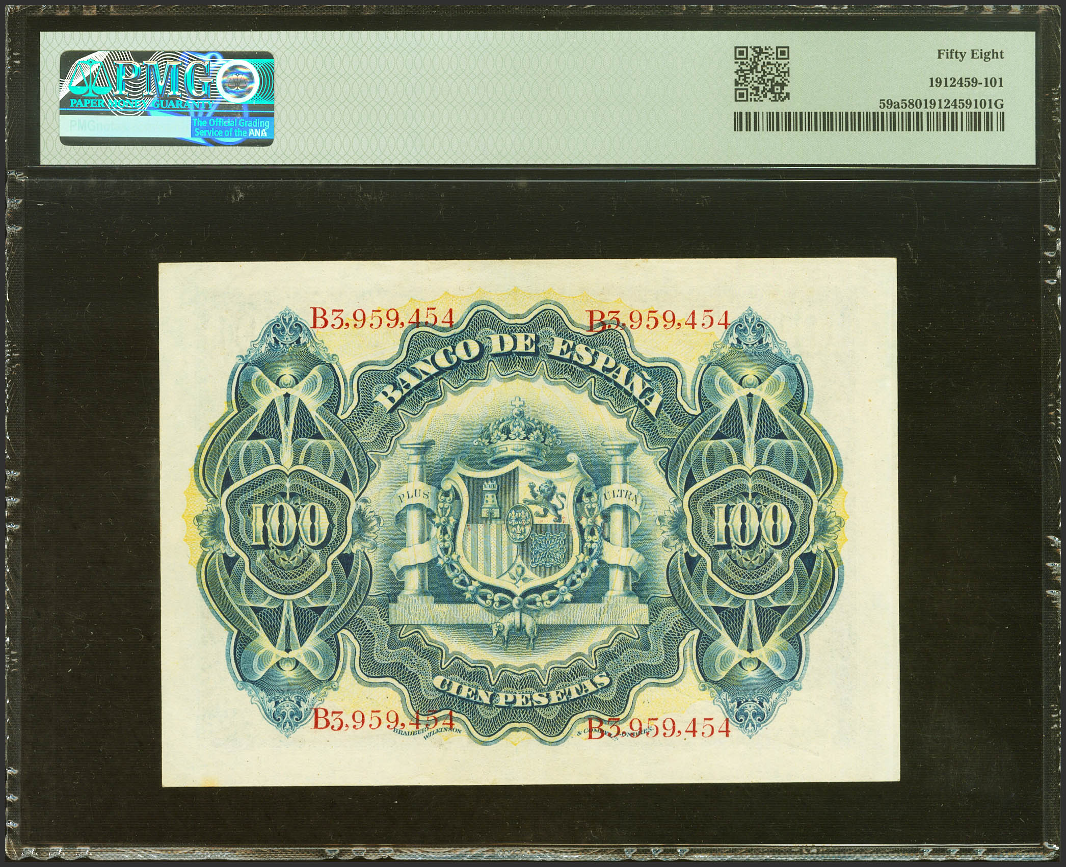 100 Pesetas. 30 de Junio de 1906. Serie B. (Edifil 2021: 313a, Pick: 59a). EBC++. Encapsulado PMG58.