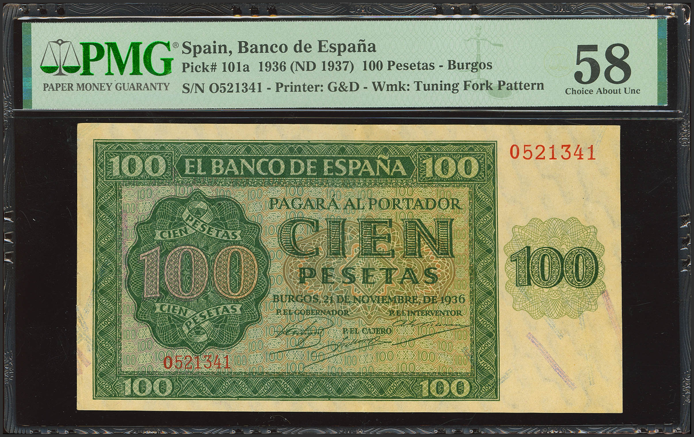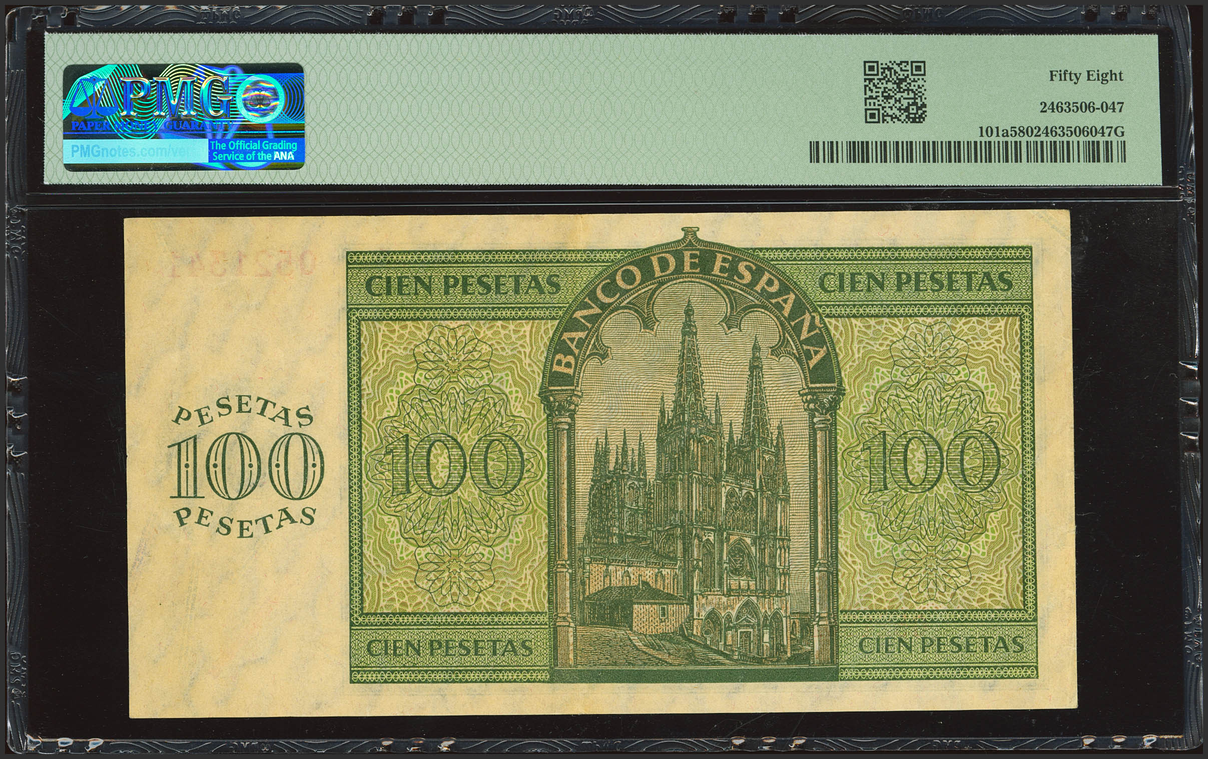 100 Pesetas. 21 de Noviembre de 1936. Serie O. (Edifil 2023: 421b, Pick: 101). EBC++. Encapsulado PMG58.