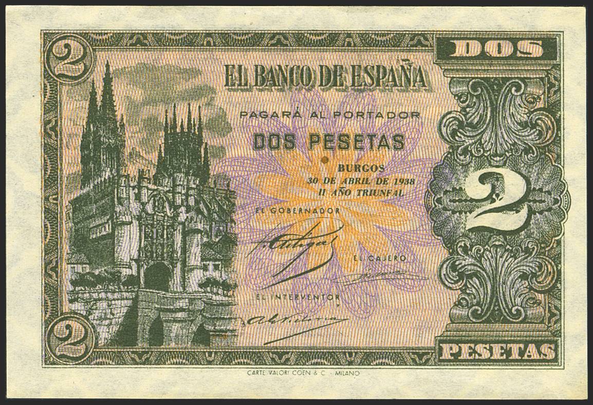 2 Pesetas. 30 de Abril de 1938. Serie C. (Edifil 2023: 429a). Apresto original. SC-.