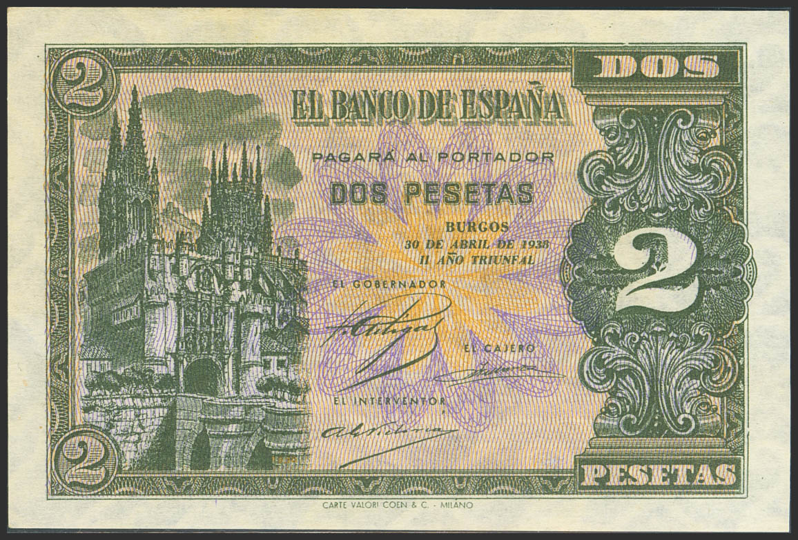 2 Pesetas. 30 de Abril de 1938. Serie G. (Edifil 2023: 429a). Apresto original. SC.