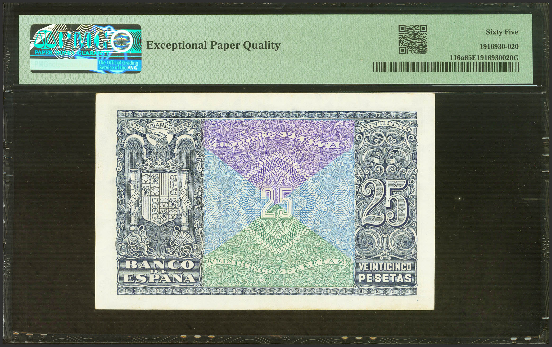 25 Pesetas. 9 de Enero de 1940. Serie E. (Edifil 2023: 436a, Pick: 116a). Apresto original. SC. Encapsulado PMG65EPQ.