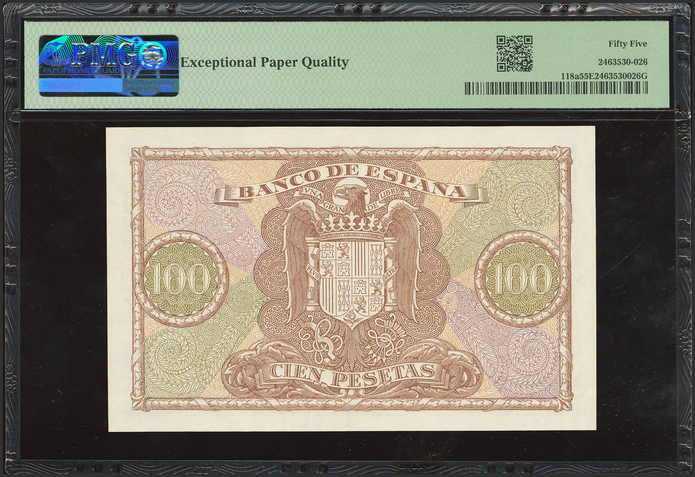 100 Pesetas. 9 de Enero de 1940. Serie H. (Edifil 2021: 438a, Pick: 118a). Apresto original. EBC++. Encapsulado PMG55EPQ.