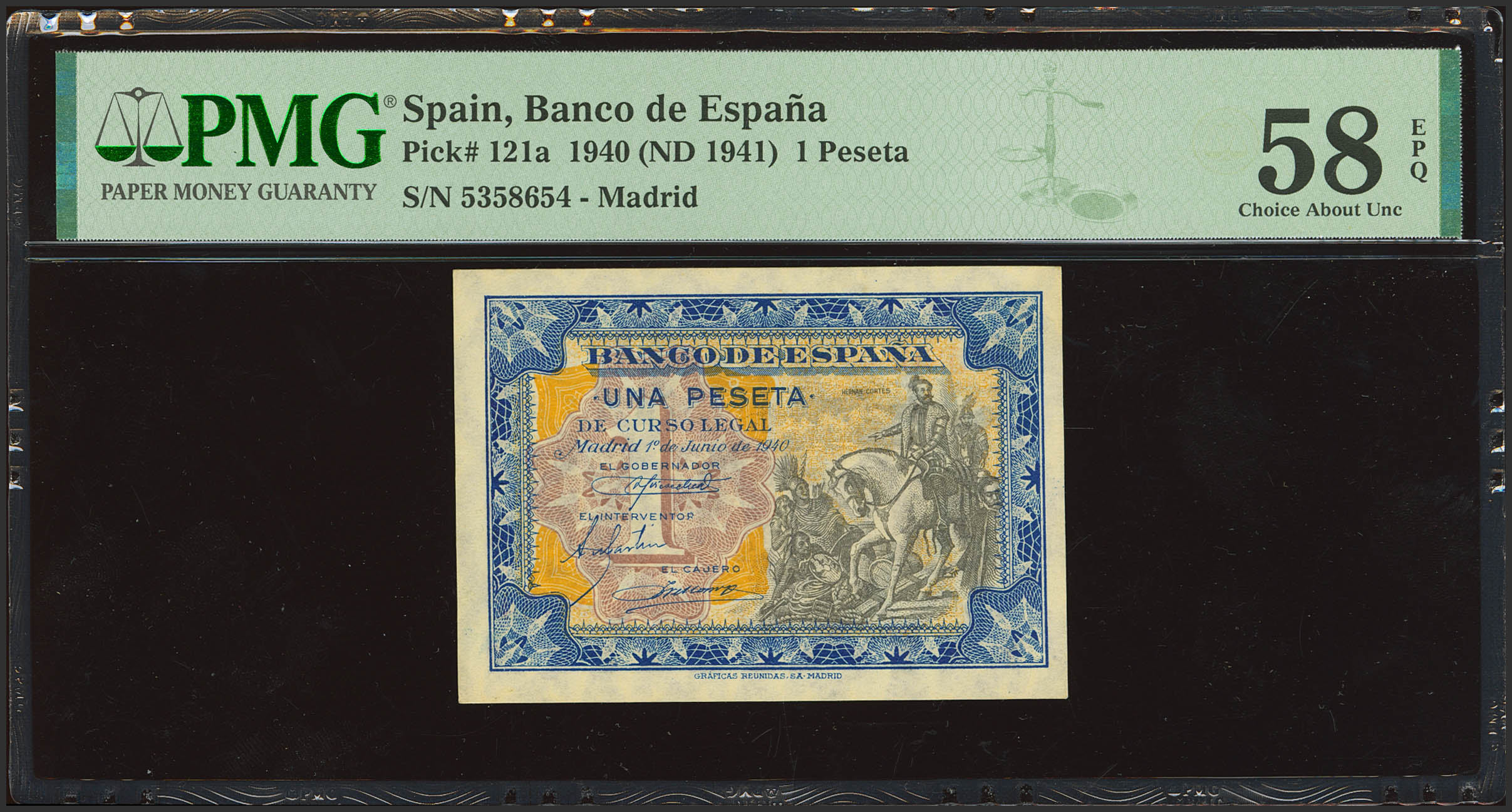 1 Peseta. 1 de Junio de 1940. Sin serie. (Edifil 2023: 441, Pick: 121a). Apresto original. EBC+++. PMG58EPQ.