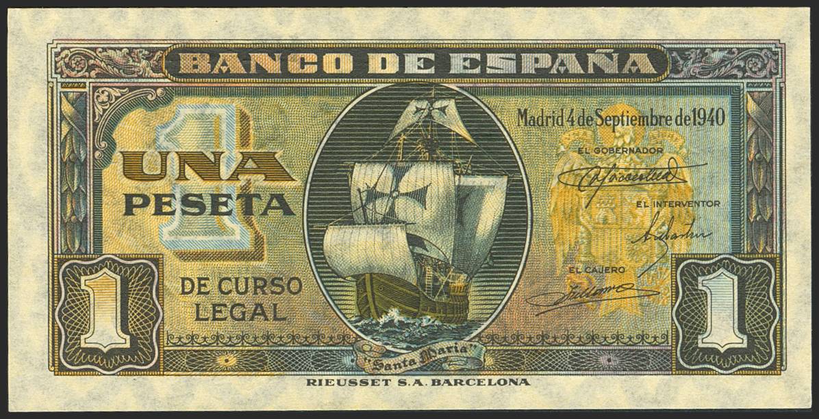1 Peseta. 4 de Septiembre de 1940. Serie H. (Edifil 2023: 442a). Apresto original. SC-.
