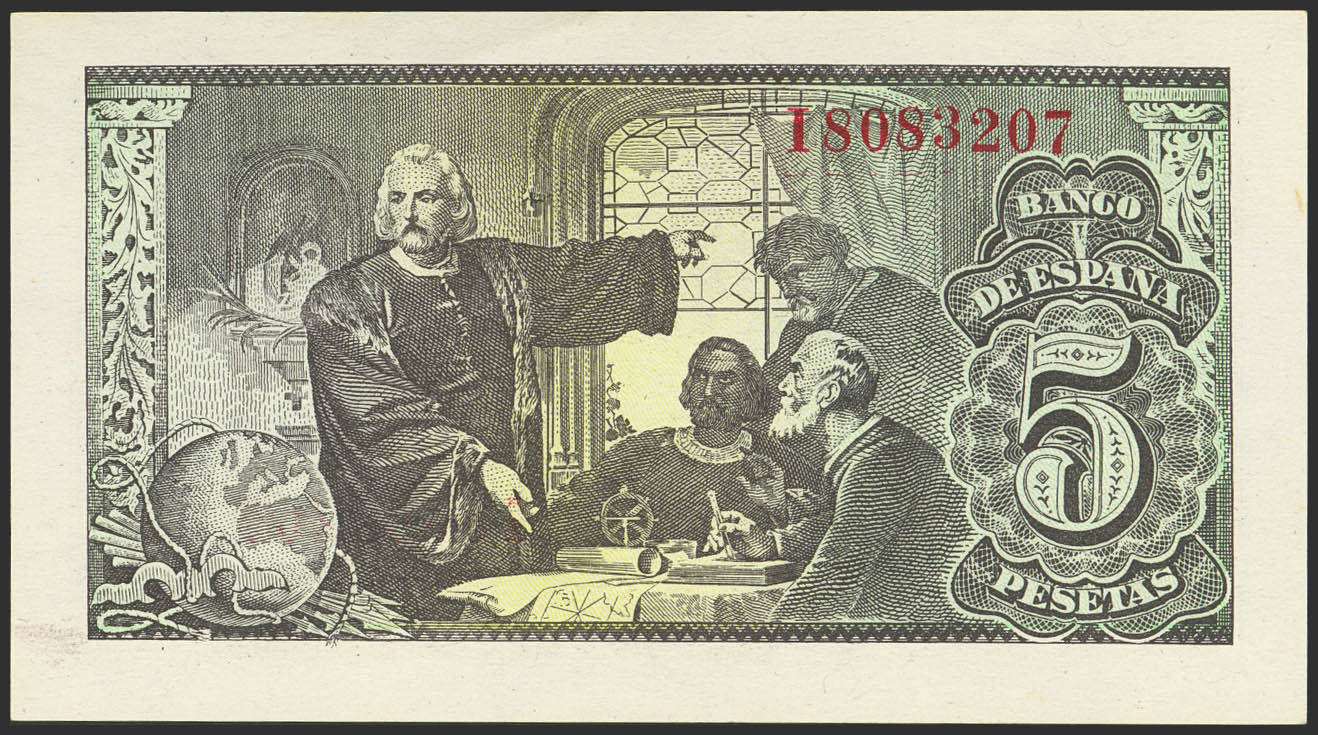 5 Pesetas. 13 de Febrero de 1943. Serie I. (Edifil 2023: 446a). Apresto original. SC-.