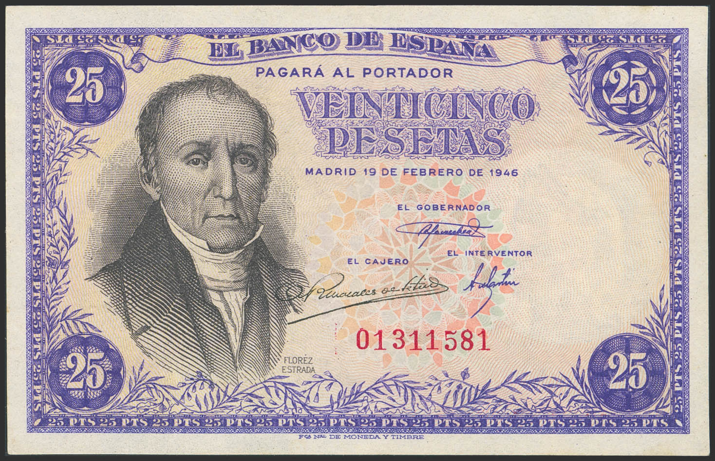 25 Pesetas. 19 de Febrero de 1946. Sin serie. (Edifil 2023: 450). Conserva gran parte de su apresto original. EBC++.