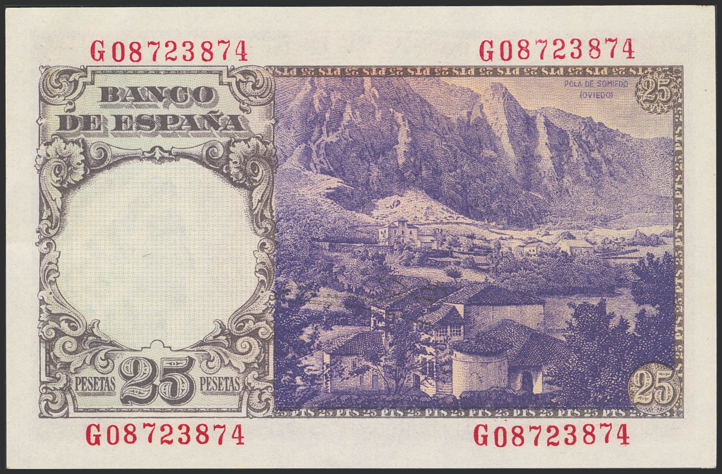 25 Pesetas. 19 de Febrero de 1946. Serie G. (Edifil 2023: 450a). Apresto original. SC--.