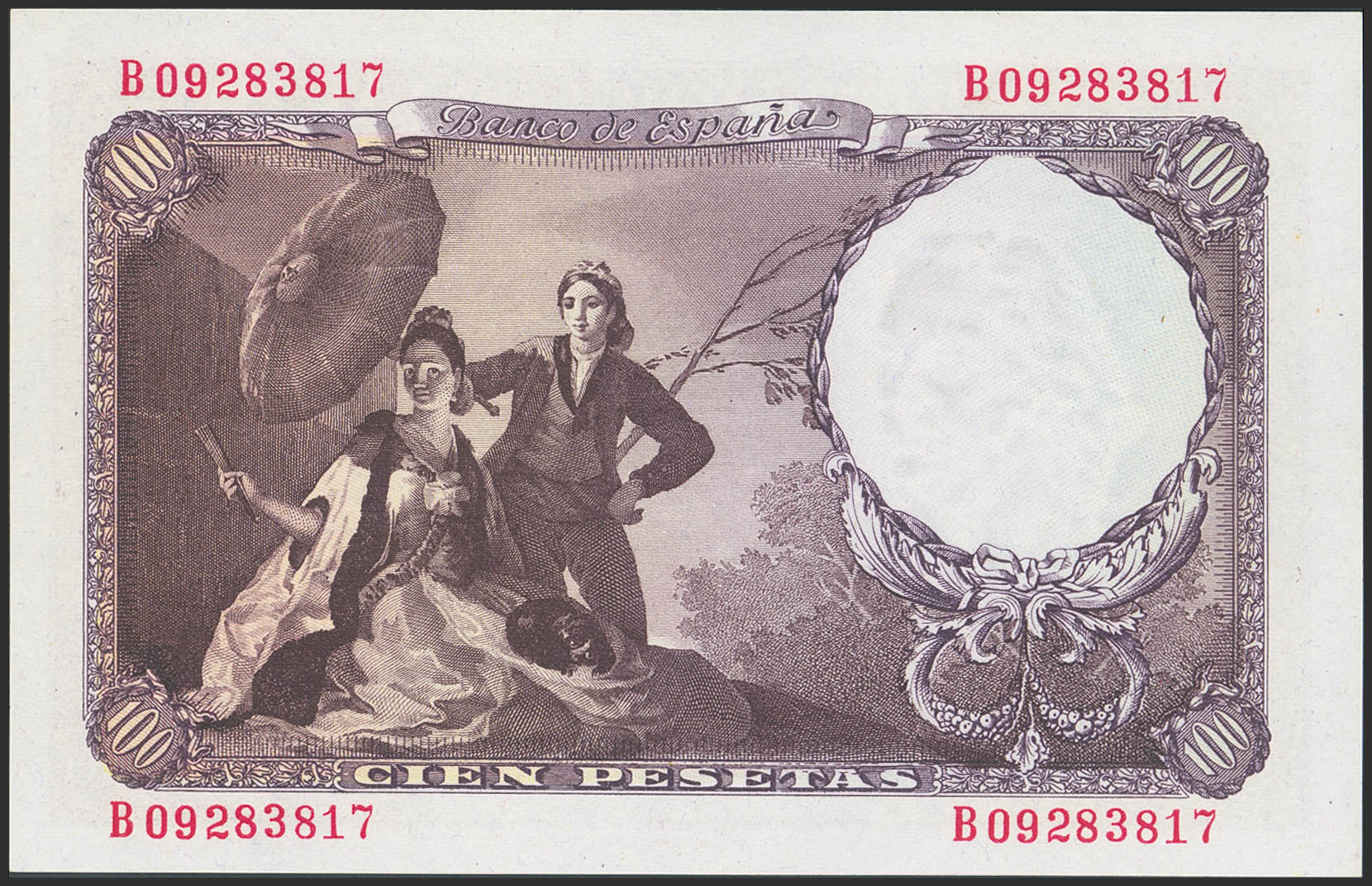 100 Pesetas. 19 de Febrero de 1946. Serie B. (Edifil 2023: 451b). Apresto original. SC.