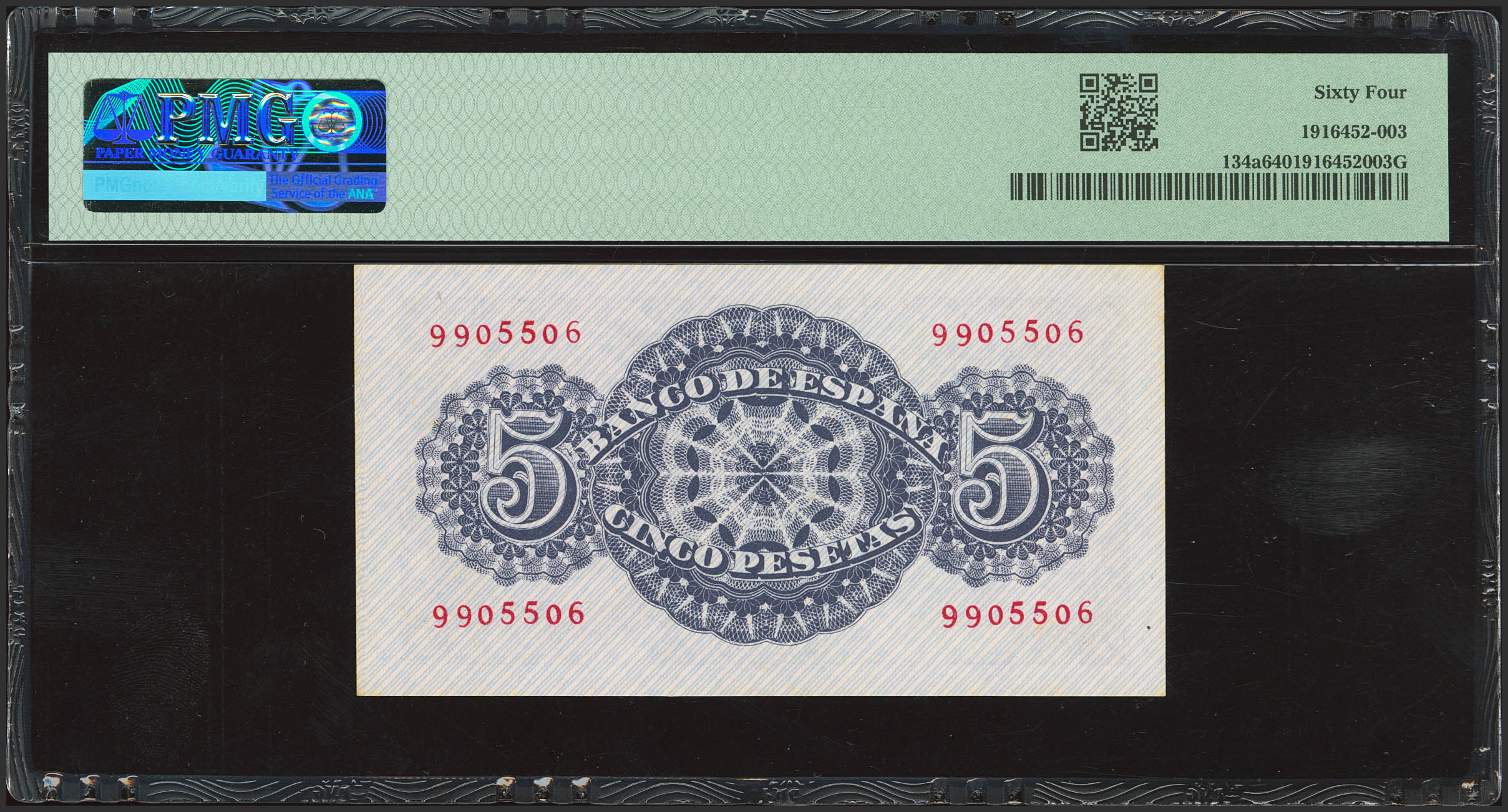 5 Pesetas. 12 de Abril de 1947. Sin serie. (Edifil 2023: 454, Pick: 134a). SC. Encapsulado PMG64.