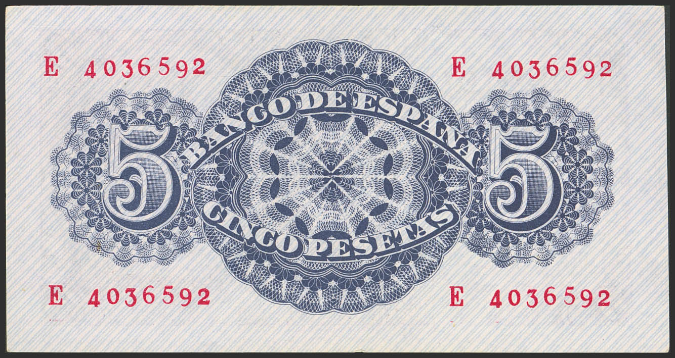 5 Pesetas. 12 de Abril de 1947. Serie E, última serie emitida. (Edifil 2023: 454b). Apresto original. SC.