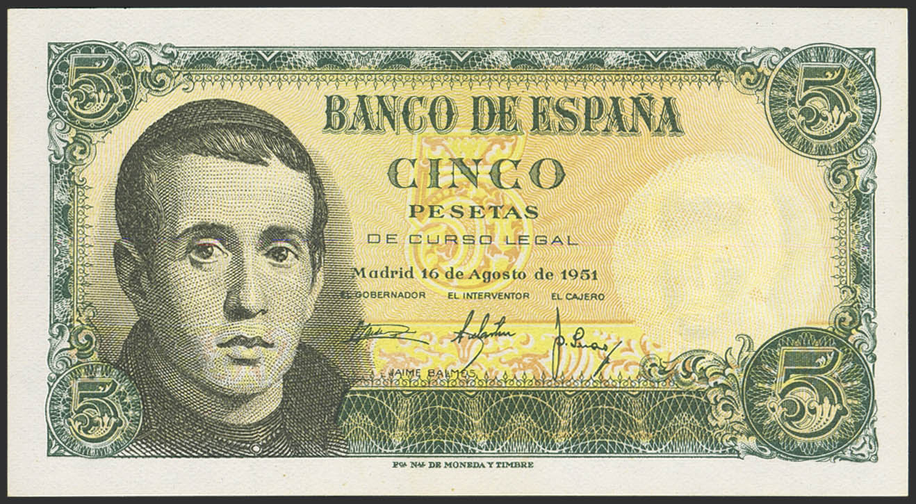 5 Pesetas. 16 de Agosto de 1951. Sin serie. (Edifil 2023: 459). Apresto original. SC.
