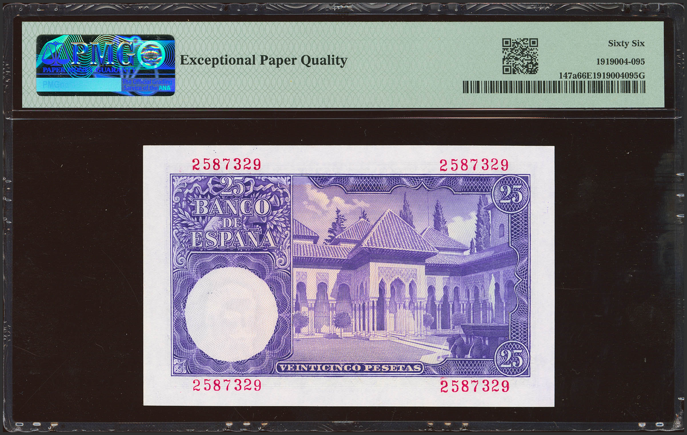 25 Pesetas. 22 de Julio de 1954. Sin serie. (Edifil 2023: 467, Pick: 147a). Rarísimo en esta excepcional calidad, conserva todo su apresto original. SC. Encapsulado PMG66EPQ.