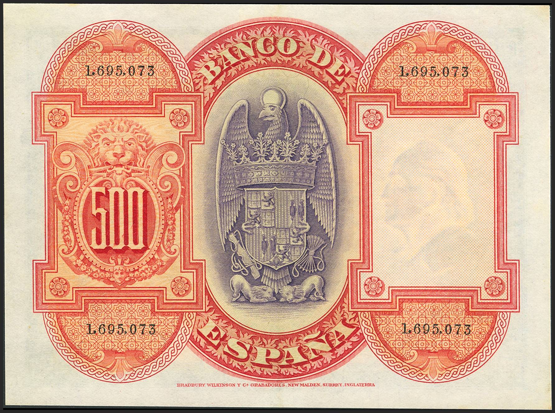 500 Pesetas. 24 de Julio de 1927. Sin serie y numeración posterior al 1602000. (Edifil 2023: 352). Conserva gran parte del apresto original. EBC.