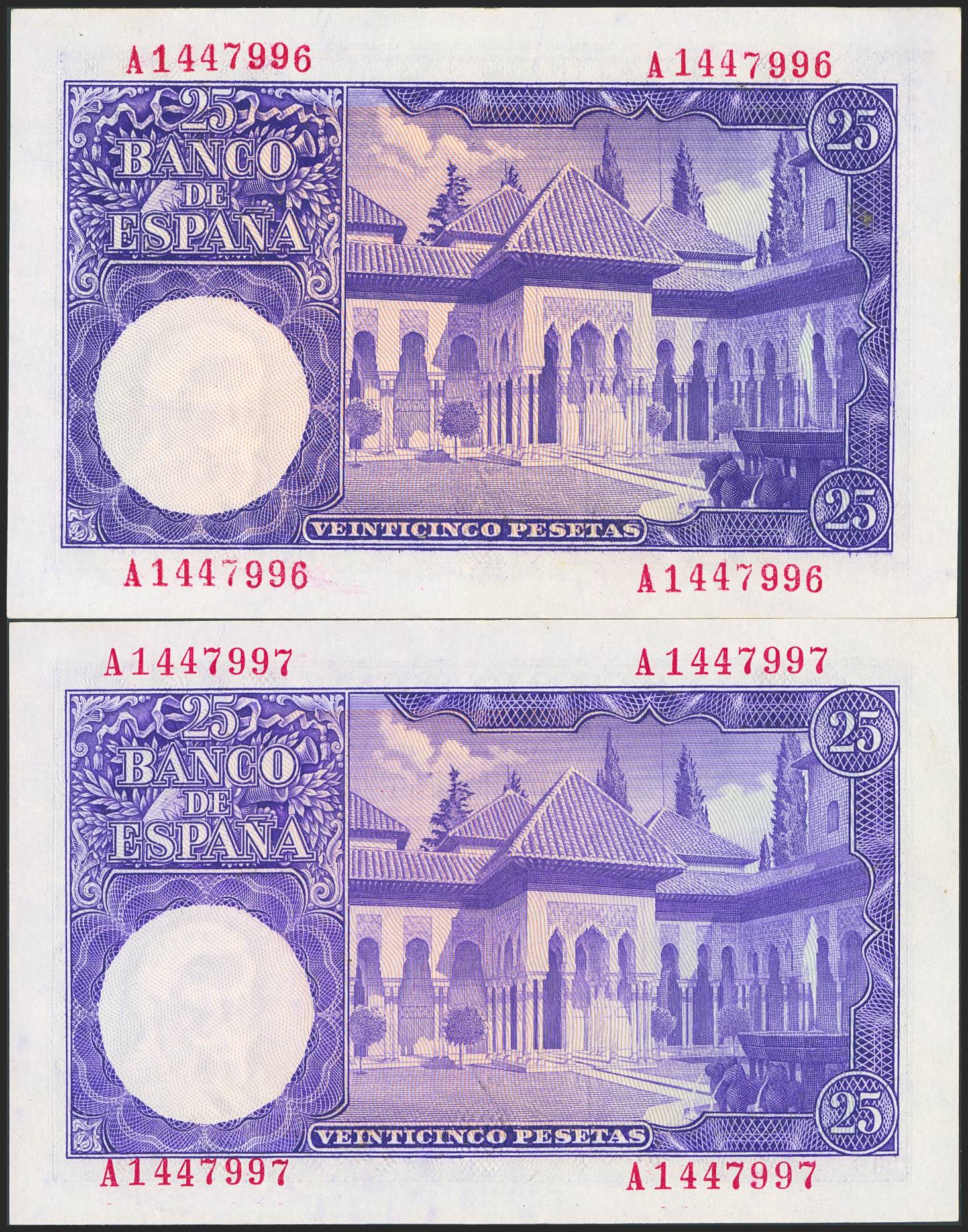 25 Pesetas. 22 de Julio de 1954. Pareja correlativa. Serie A. (Edifil 2023: 467a). Apresto original. SC-.