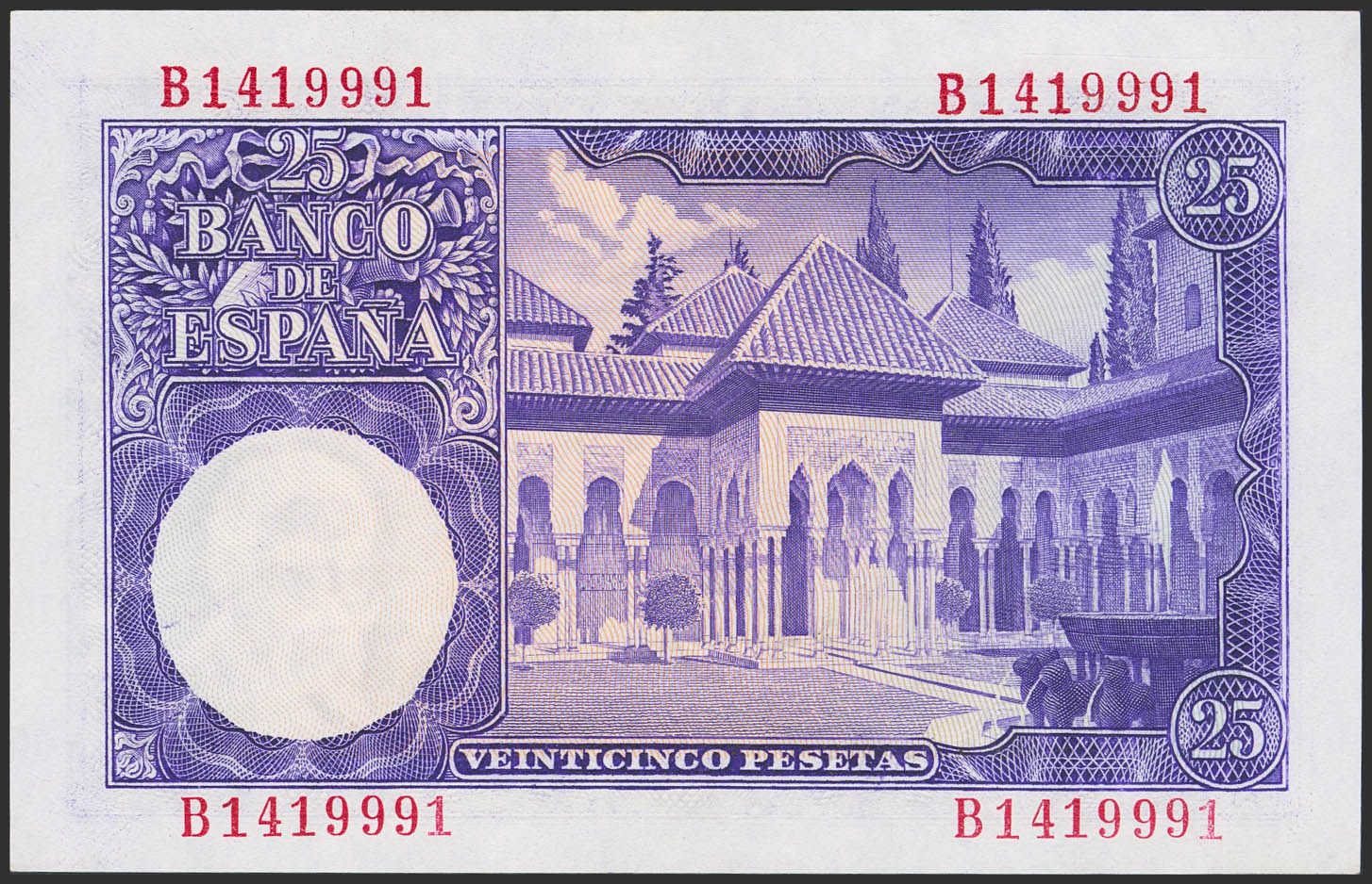 25 Pesetas. 22 de Julio de 1954. Serie B. (Edifil 2023: 467a). Apresto original. SC.