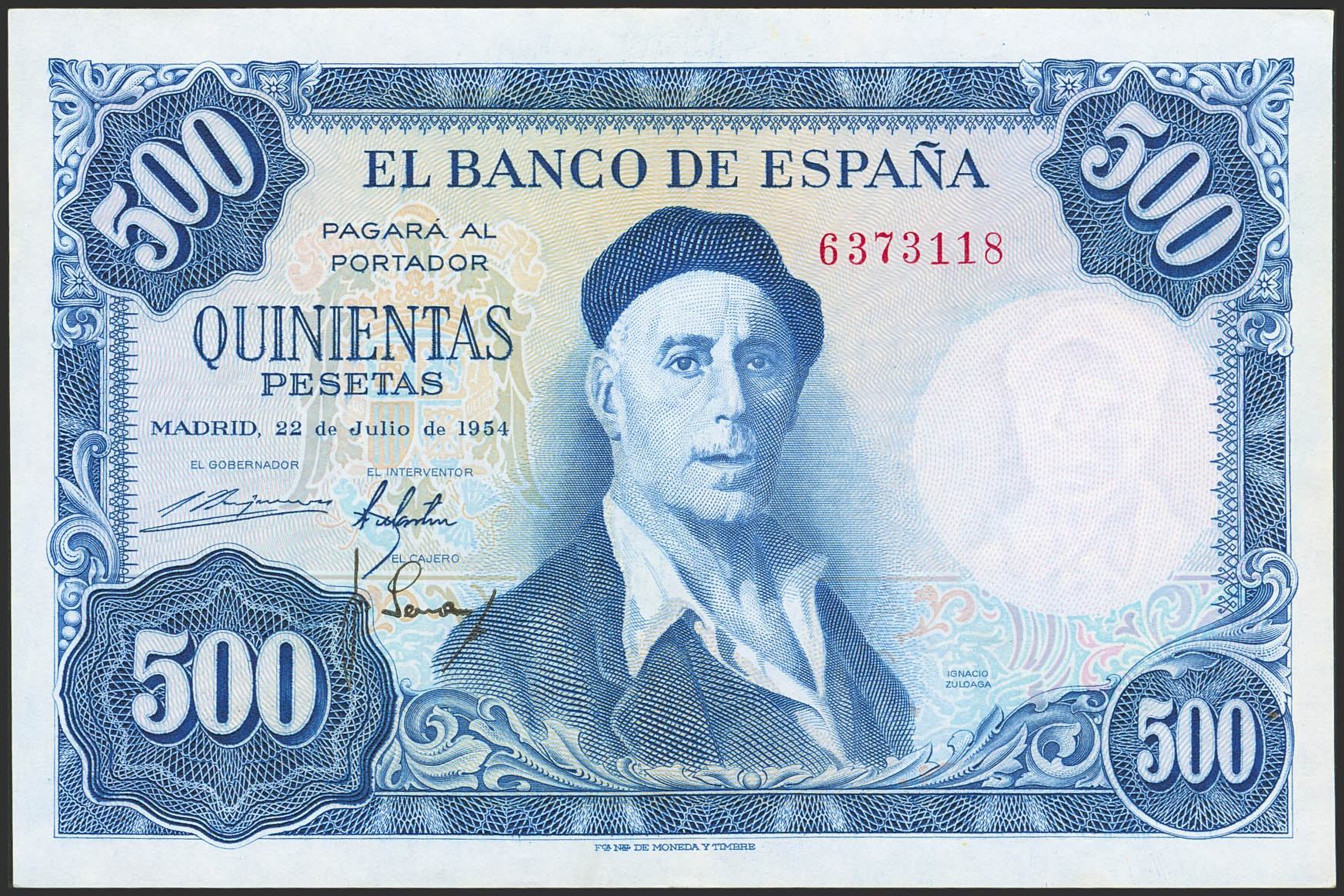 500 Pesetas. 22 de Julio de 1954. Sin serie. (Edifil 2023: 468). Apresto original. EBC+.
