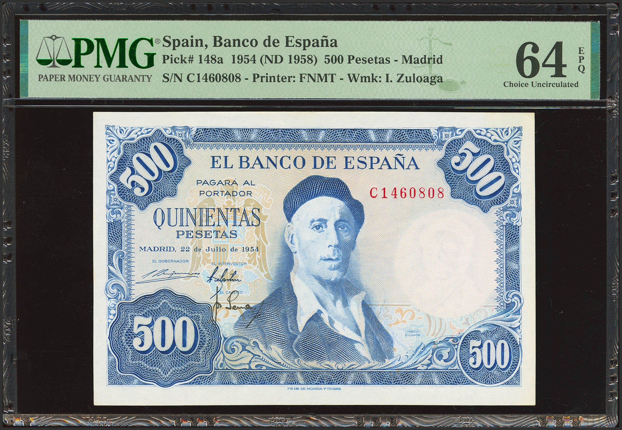 500 Pesetas. 22 de Julio de 1954. Serie C. (Edifil 2023: 468b, Pick: 148a). Inusual en esta excepcional calidad, apresto original. SC. Encapsulado PMG64EPQ.