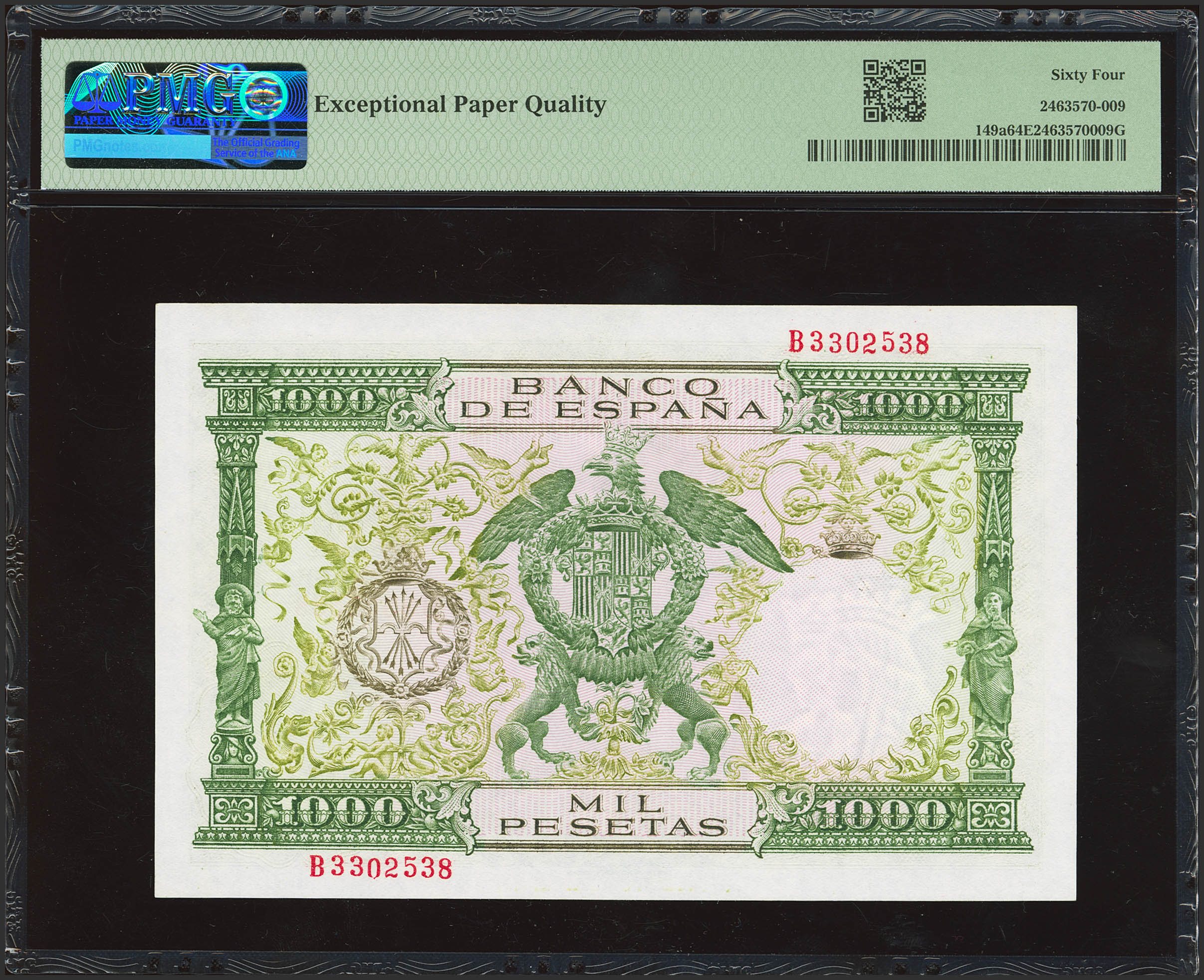 1000 Pesetas. 29 de Noviembre de 1957. Serie B. (Edifil 2023: 469b, Pick: 149a). Apresto original. SC. Encapsulado PMG64EPQ.