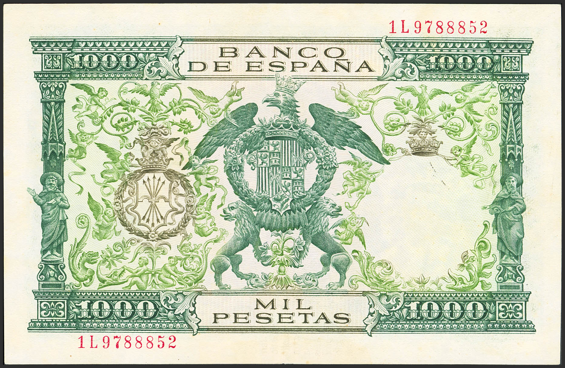 1000 Pesetas. 29 de Noviembre de 1957. Serie 1L. (Edifil 2023: 469b). Conserva parte de su apresto original, tonalizado. EBC+.