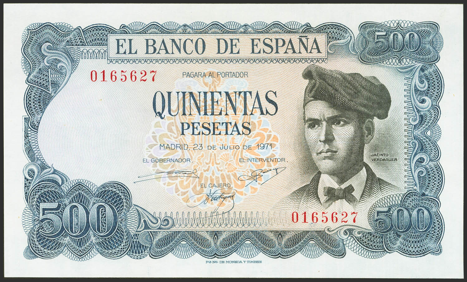 500 Pesetas. 23 de Julio de 1971. Sin serie. (Edifil 2021: 473). Conserva todo su apresto original. SC.