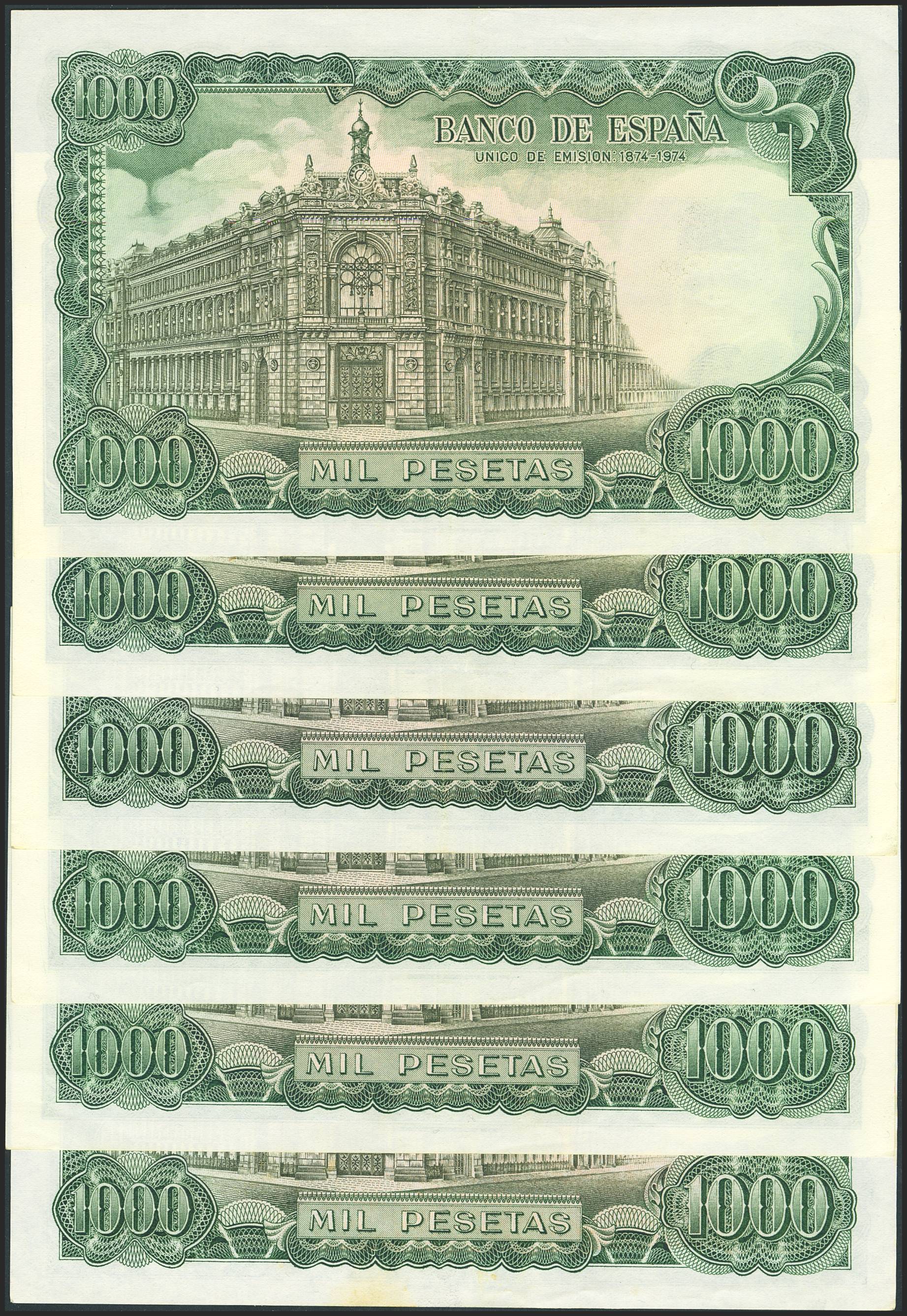 Conjunto de 6 billetes de 1000 Pesetas emitido el 17 de Septiembre de 1971, con las series 4N, 4W, 6I, 6X y la serie especial 9C. (Edifil 2023: 474c, 474d). A EXAMINAR.