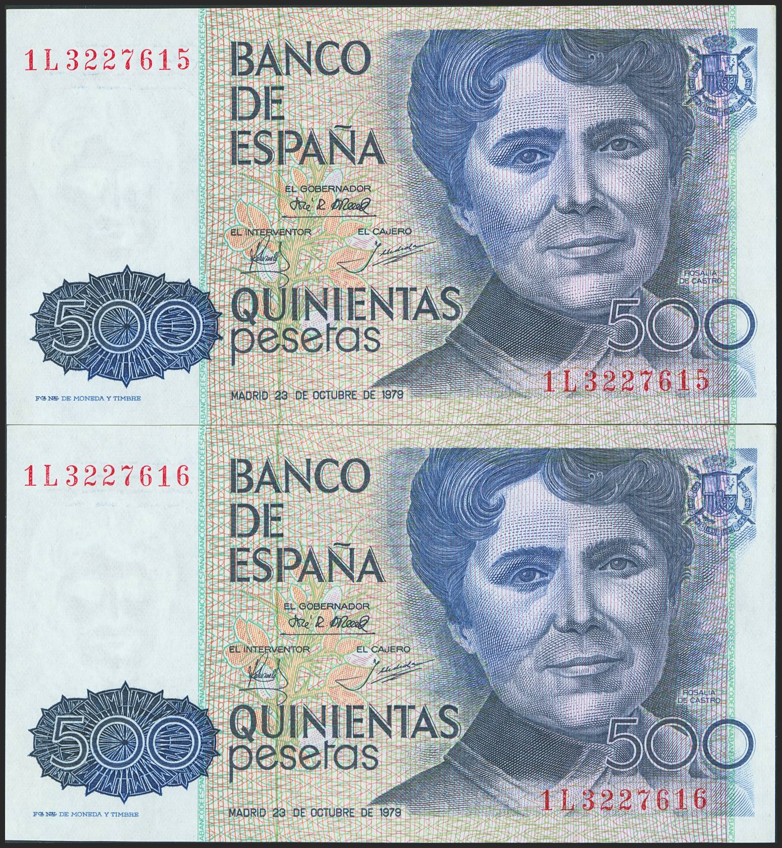 500 Pesetas. 23 de Octubre de 1979. Pareja correlativa. Serie 1L. (Edifil 2023: 476a). SC.